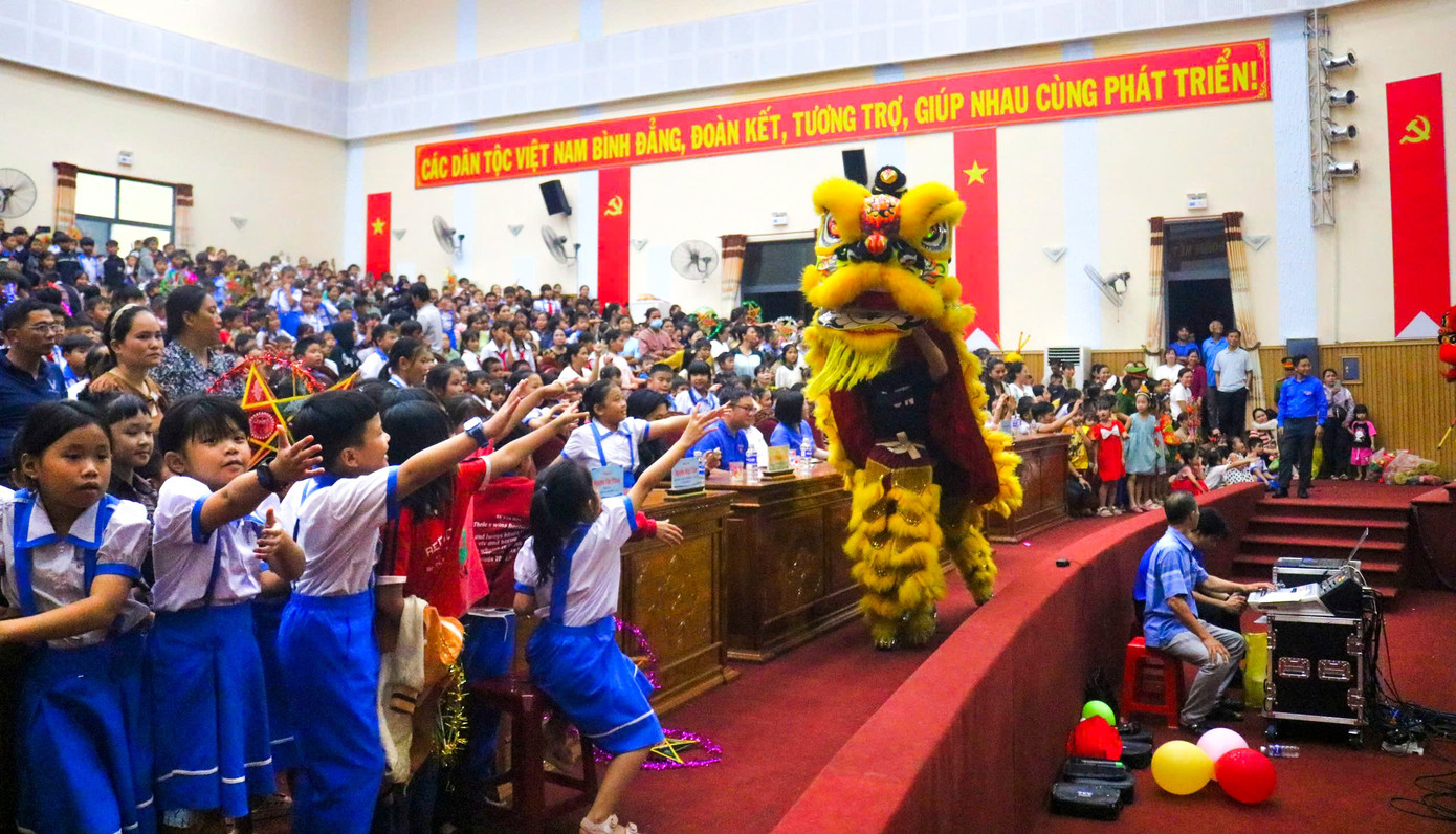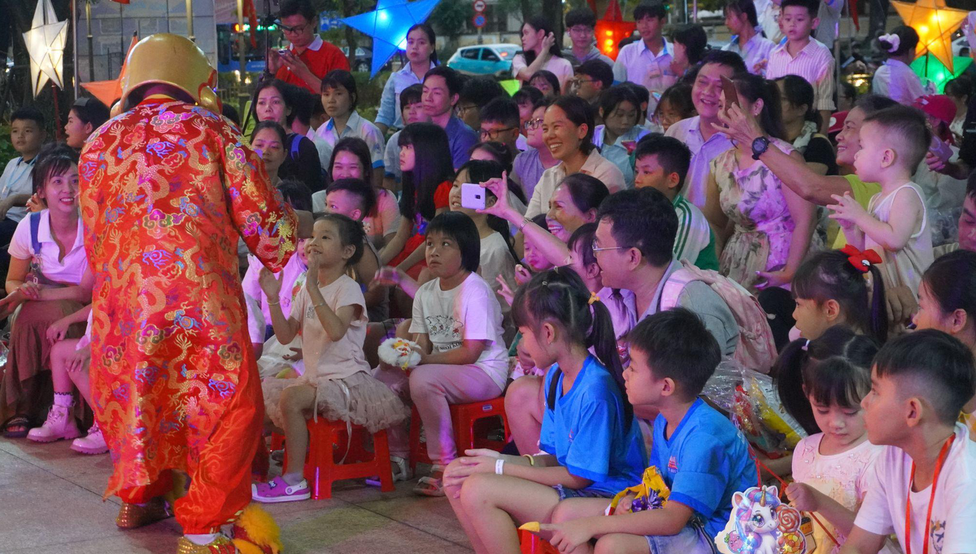 Không khí Trung thu năm nay thêm rộn ràng khi hàng trăm em thiếu nhi cùng phụ huynh, các bạn đoàn viên thanh niên và các đơn vị đồng hành hội tụ trong không gian rực rỡ sắc màu ánh đèn, tiếng trống lân, tiếng hát tuổi thơ.