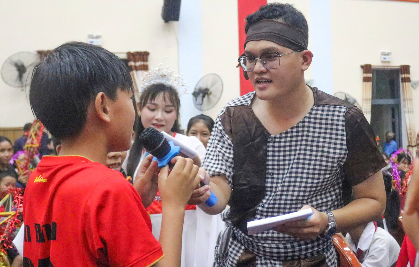 Thiếu nhi hào hứng tham gia trò chơi đố vui Trung thu.