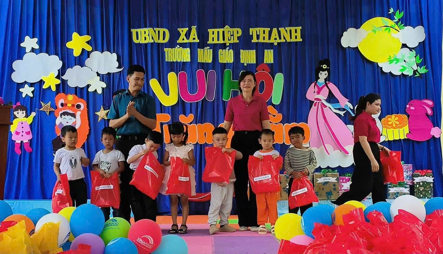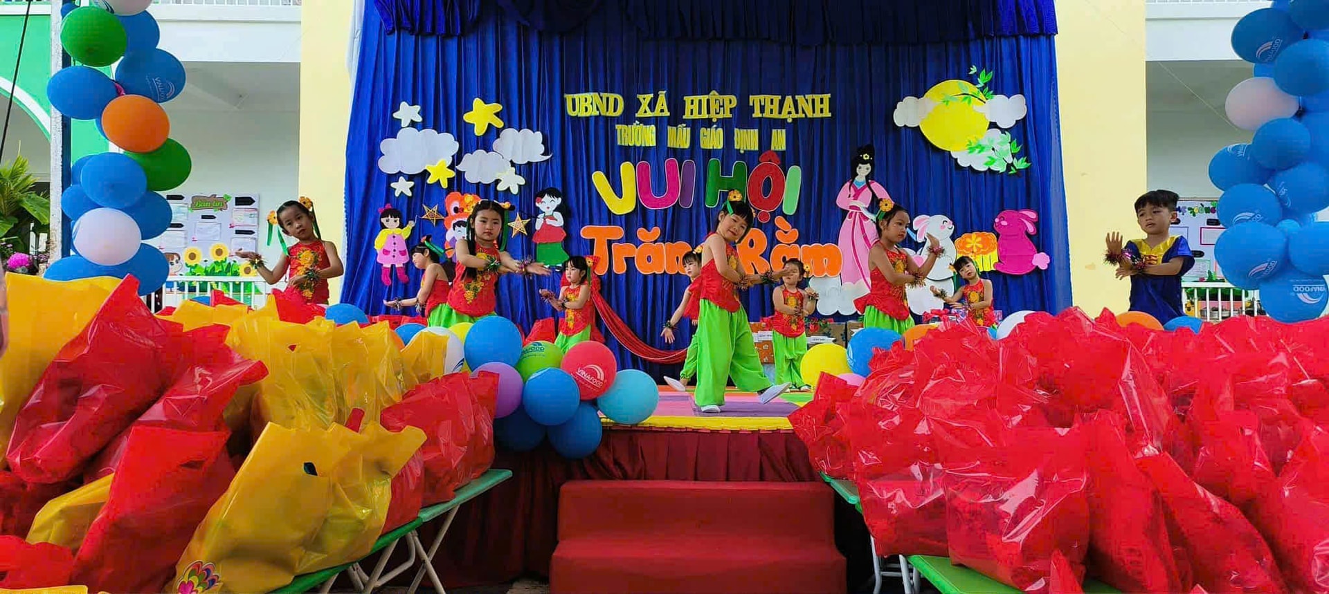 Cùng ngày, tại Trường Mẫu giáo Định An (xã Hiệp Thạnh), chương trình “Vui hội trăng rằm” do UBND xã Hiệp Thạnh phối hợp với nhà trường và Hội Cha mẹ học sinh tổ chức đã mang đến niềm vui cho hàng trăm thiếu nhi.