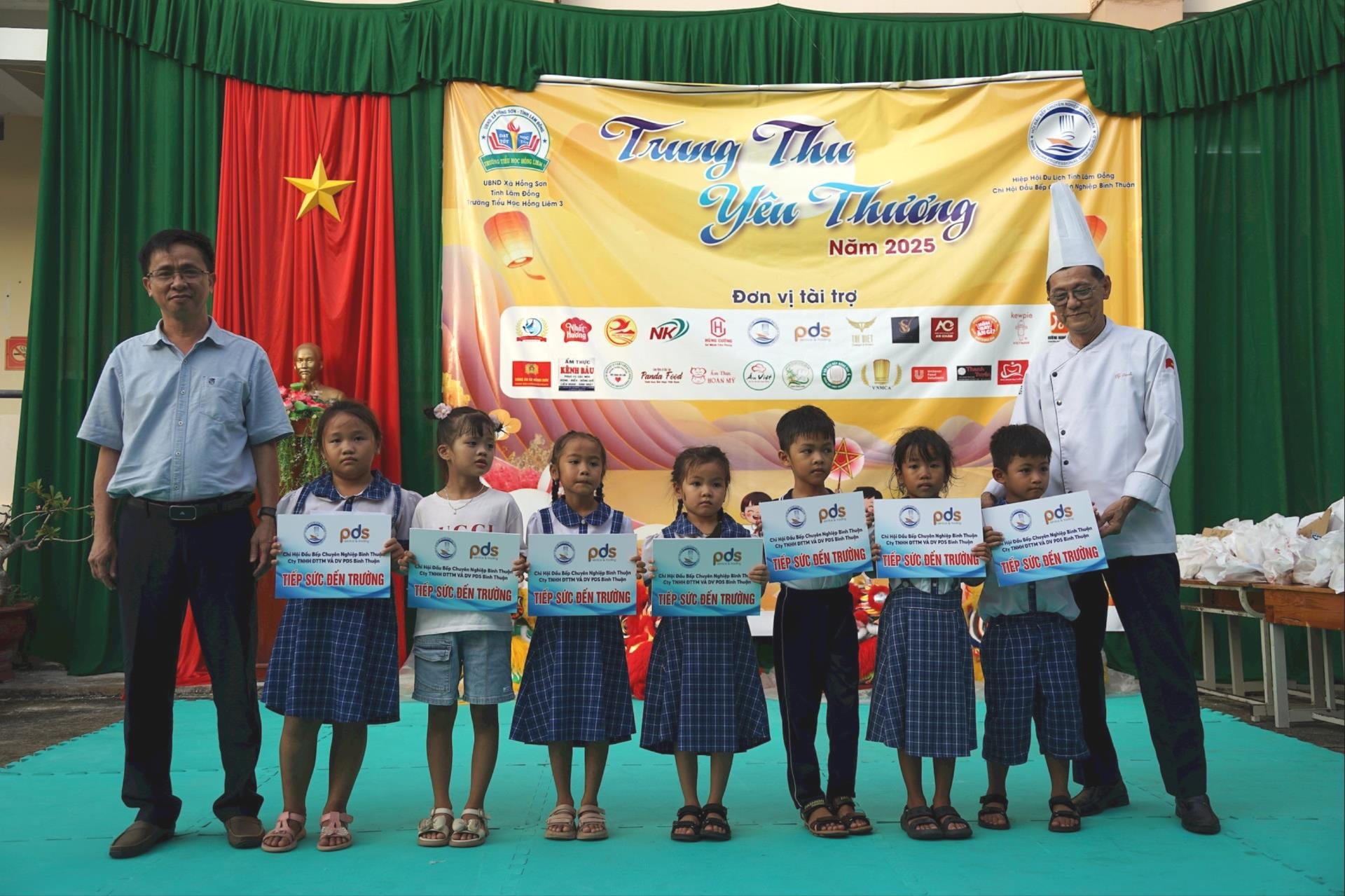 Tại Trường Tiểu học Hồng Liêm 3 (xã Hồng Sơn), UBND xã Hồng Sơn phối hợp với Chi hội Đầu bếp Bình Thuận tổ chức chương trình “Trung thu yêu thương 2025” cho gần 1.000 học sinh mầm non và tiểu học.