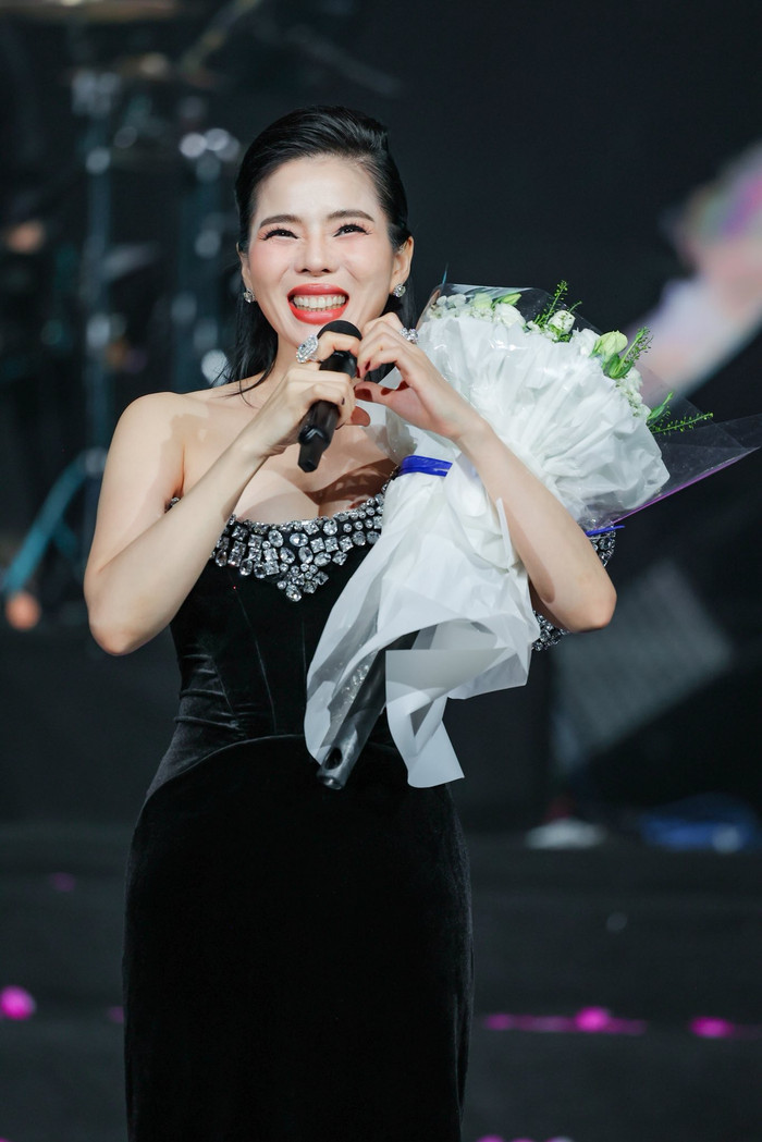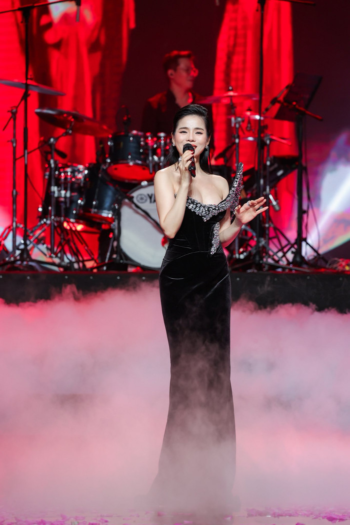 Điểm nhấn của đêm nhạc là ca khúc Vùng trời bình yên - hit từng "làm mưa làm gió" Vpop thập niên 2000. Dù không phải bài hát gốc của mình, Lệ Quyên vẫn mang đến phiên bản đậm dấu ấn cá nhân, với giọng hát sang trọng và cách xử lý tinh tế, vừa mới mẻ vừa giữ nguyên vẻ lãng mạn, sâu lắng mà khán giả yêu thích.