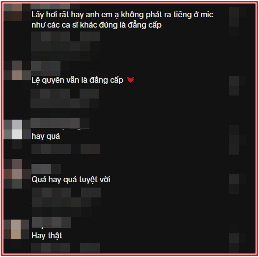Ngay khi clip được chia sẻ, cư dân mạng đồng loạt khen ngợi màn trình diễn. Giọng hát khỏe, nội lực, giàu cảm xúc của cô khiến nhiều người trầm trồ. Không chỉ khán giả trẻ, cả những người lớn tuổi, từ những fan trung thành từ đầu thập niên 2000 đến người thường xuyên theo dõi phòng trà, đều công nhận Lệ Quyên vẫn là "nữ hoàng phòng trà" với đẳng cấp không thay đổi theo thời gian.