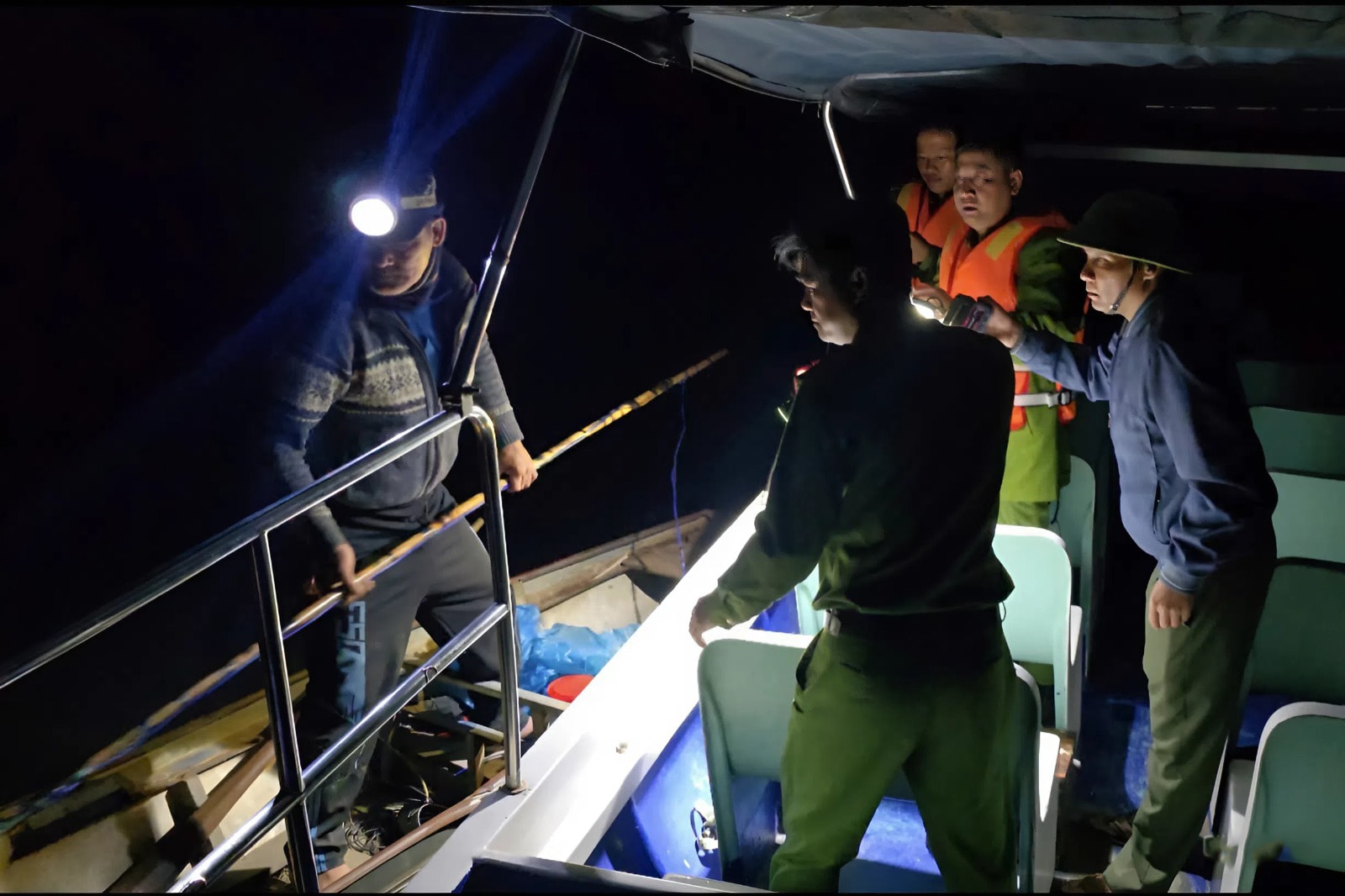 Lực lượng Công an xã Tà Đùng phối hợp tuần tra ban đêm, phát hiện và ngăn chặn hành vi khai thác thủy sản bằng kích điện