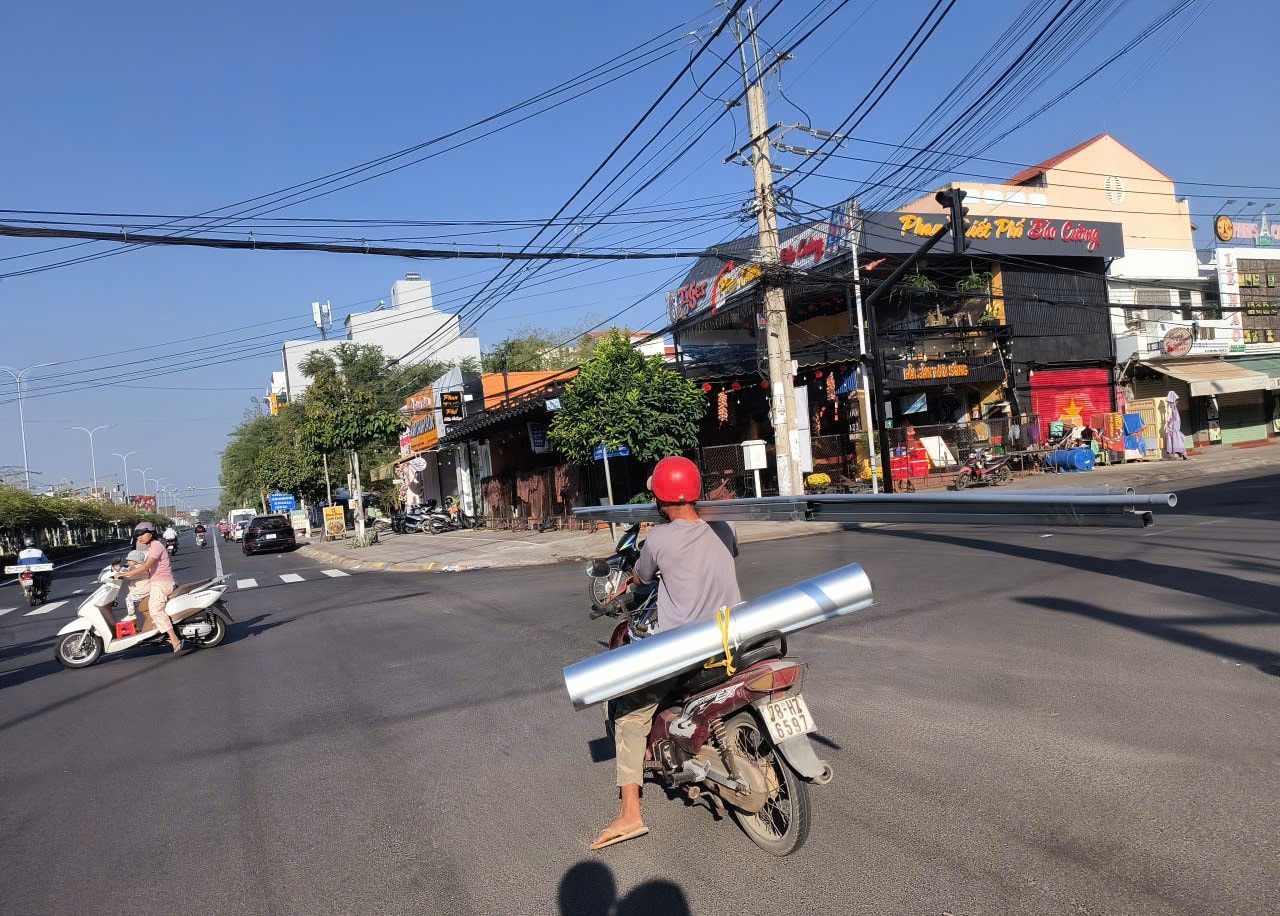Thời gian qua, người tham gia giao thông trên các tuyến đường không khó bắt gặp cảnh xe máy chở hàng cồng kềnh. Điển hình vào ngày 15/2/2026, người tham gia giao thông trên đại lộ Hùng Vương, thuộc phường Phú Thủy, chứng kiến cảnh một người đàn ông trung niên chở một cuộn sắt, một tay vác các thanh sắt, một tay điều khiển xe. Ai nhìn cũng ái ngại vì cuộn sắt và những thanh sắt vừa dài vừa nặng, tiềm ẩn nguy cơ tai nạn giao thông.