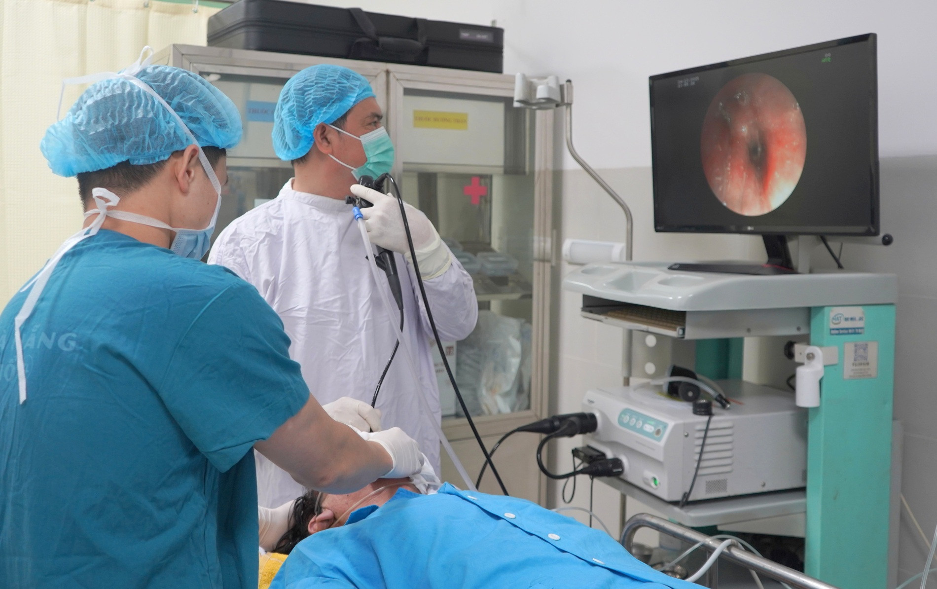 Bác sĩ tiến hành nội soi gắp dị vật cho bệnh nhân. Ảnh: Thu Thảo.