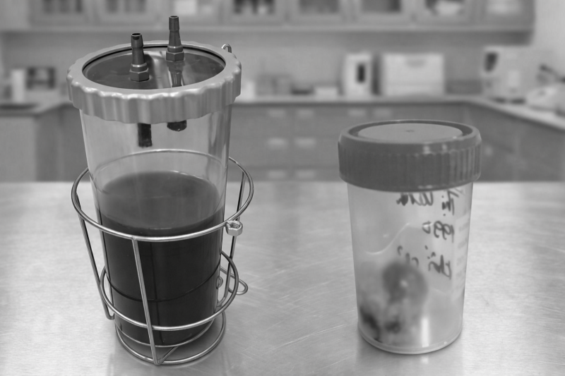 Một phần máu và bệnh phẩm sau phẫu thuật.