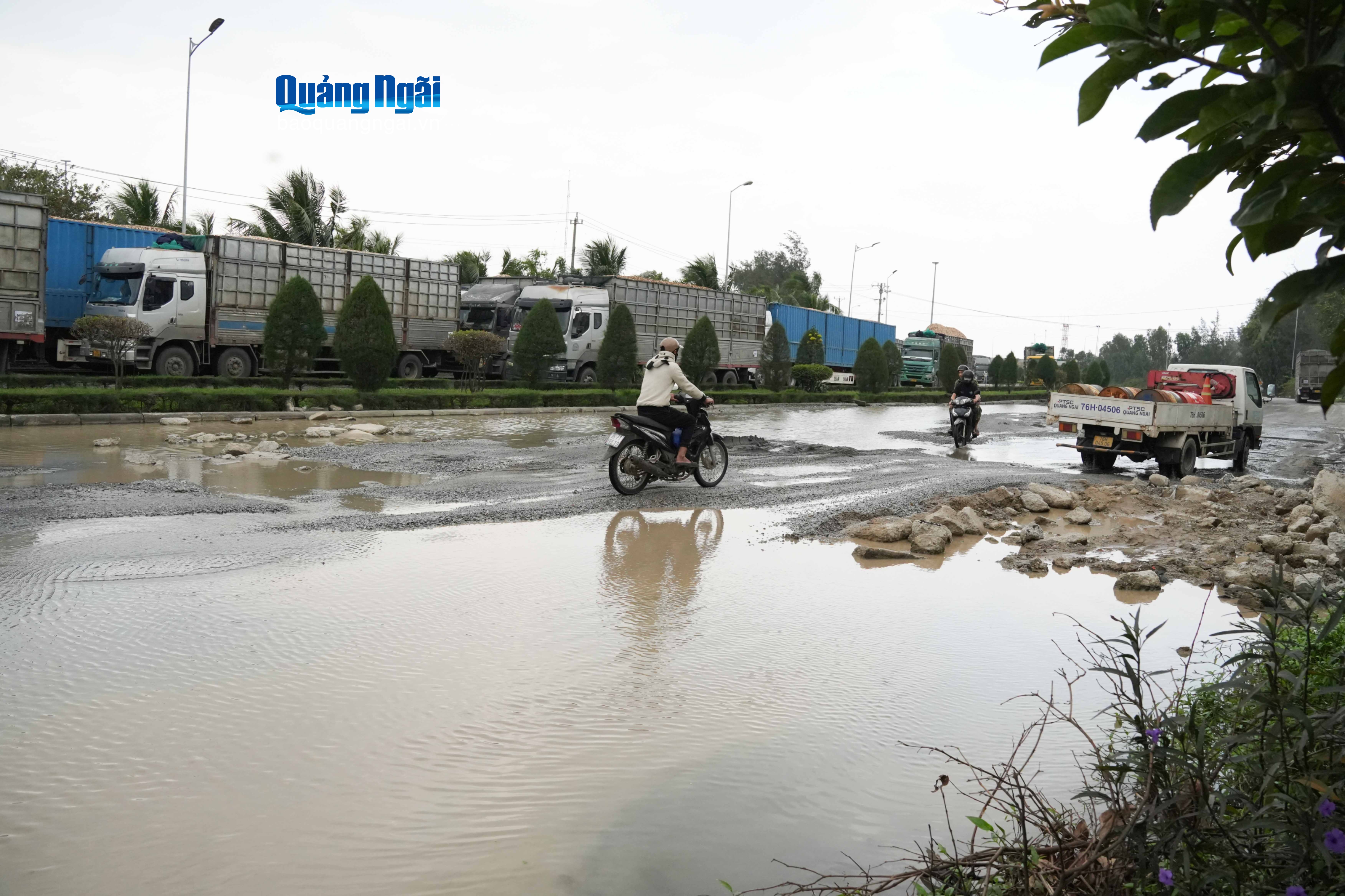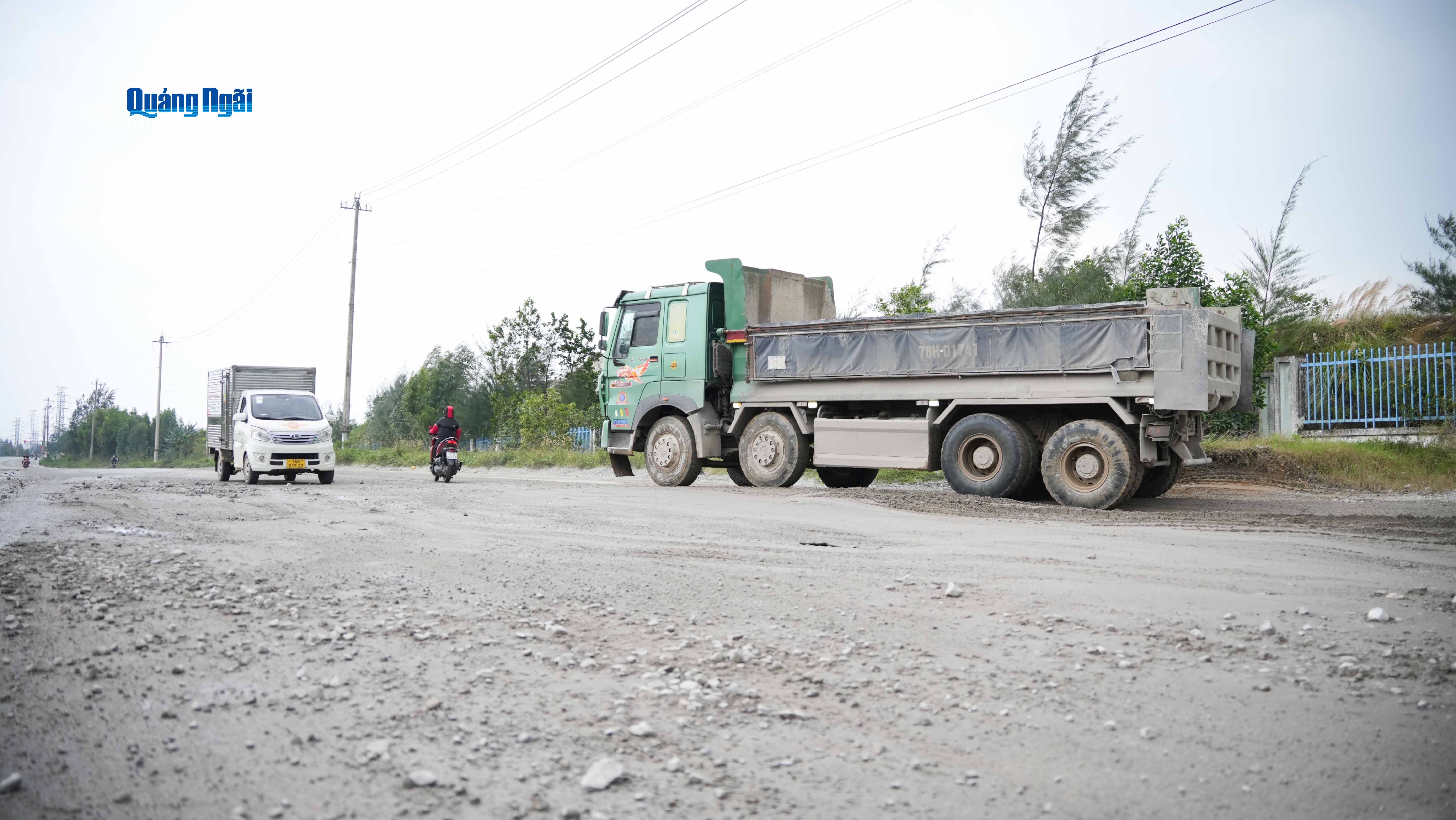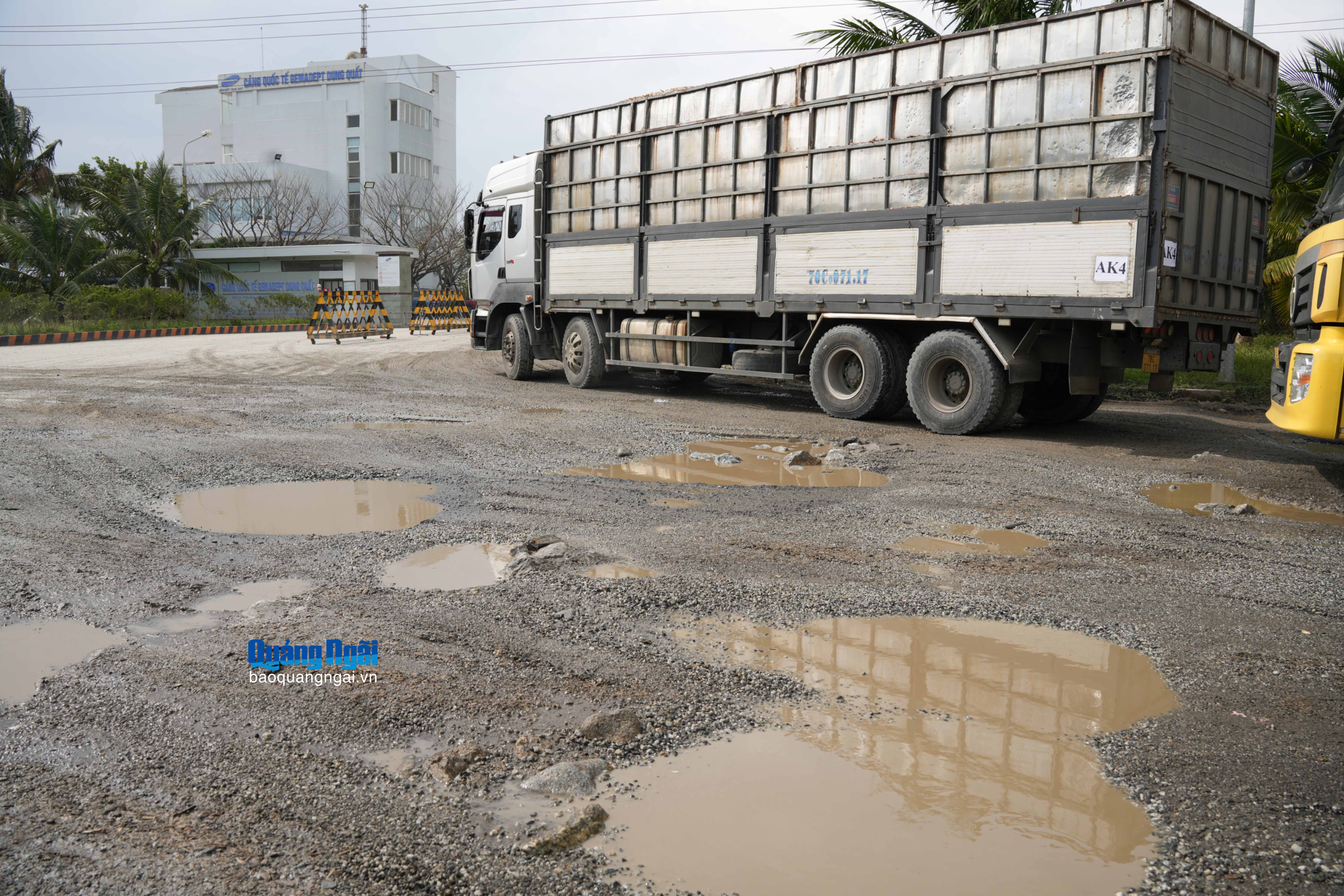 Đặc biệt, đoạn đường dài khoảng 500m dẫn vào cảng Quốc tế Gemadept Dung Quất, qua thôn Tuyết Diêm 1, đang bị hư hỏng nặng, tiềm ẩn nguy cơ tai nạn giao thông.