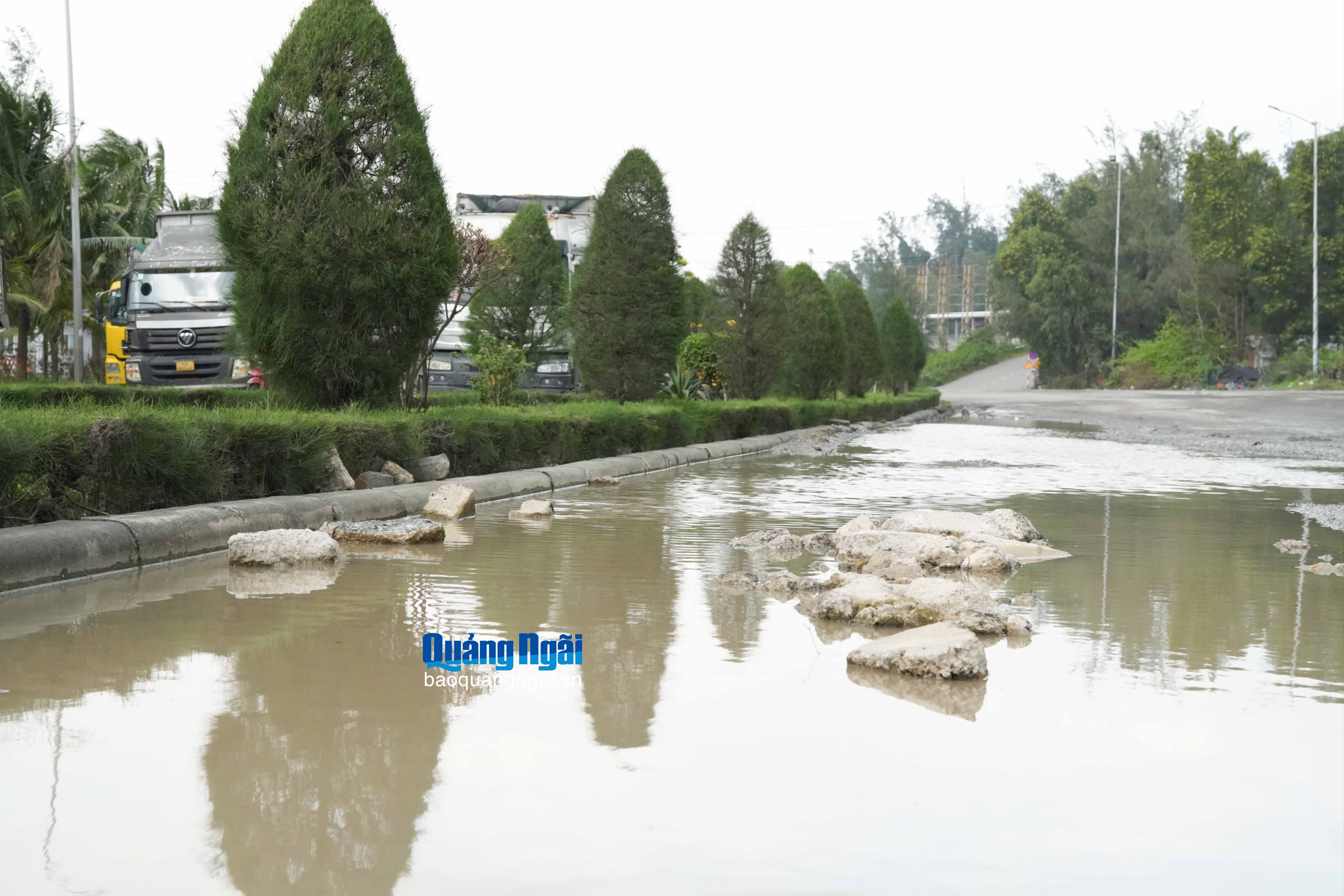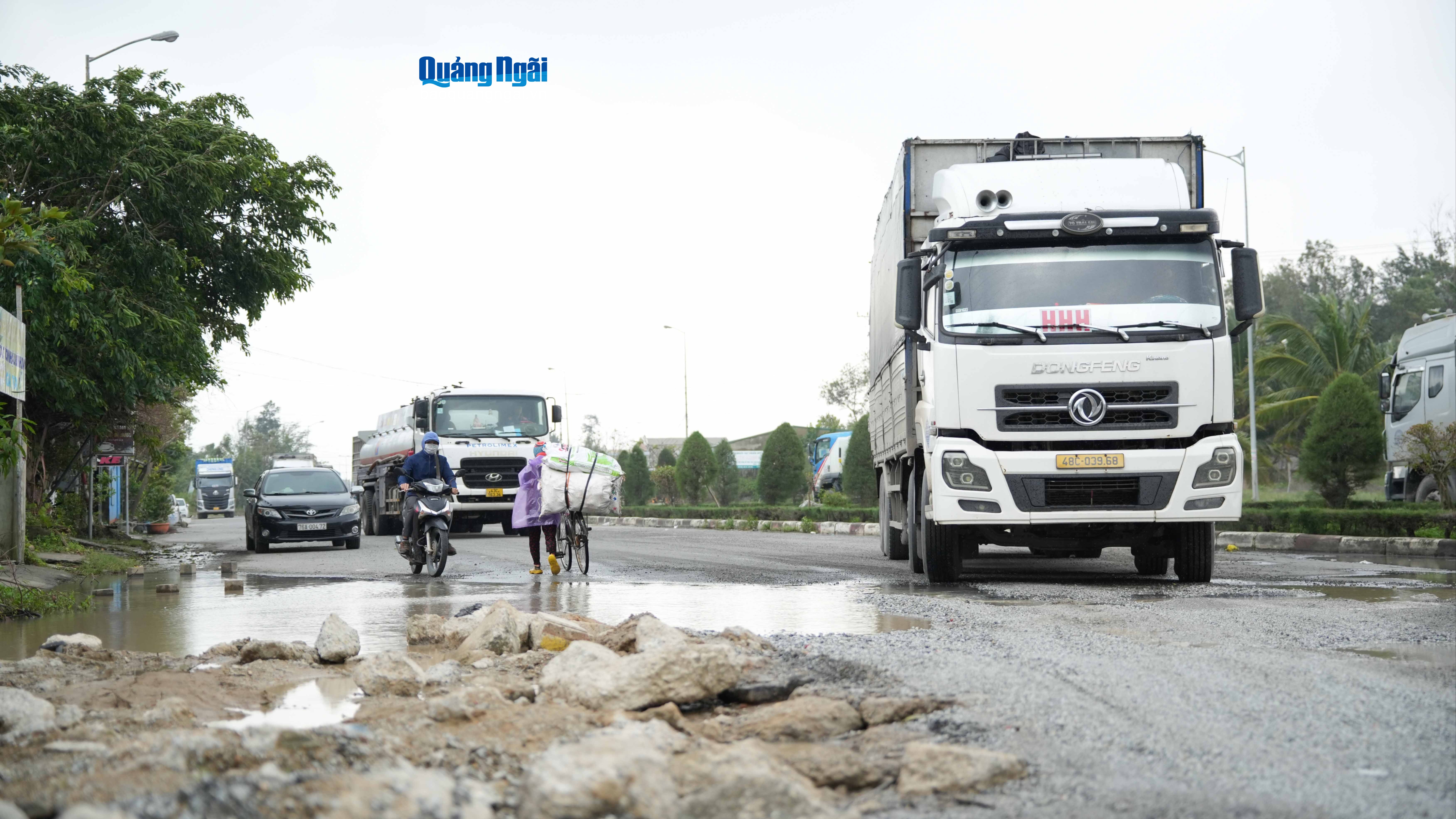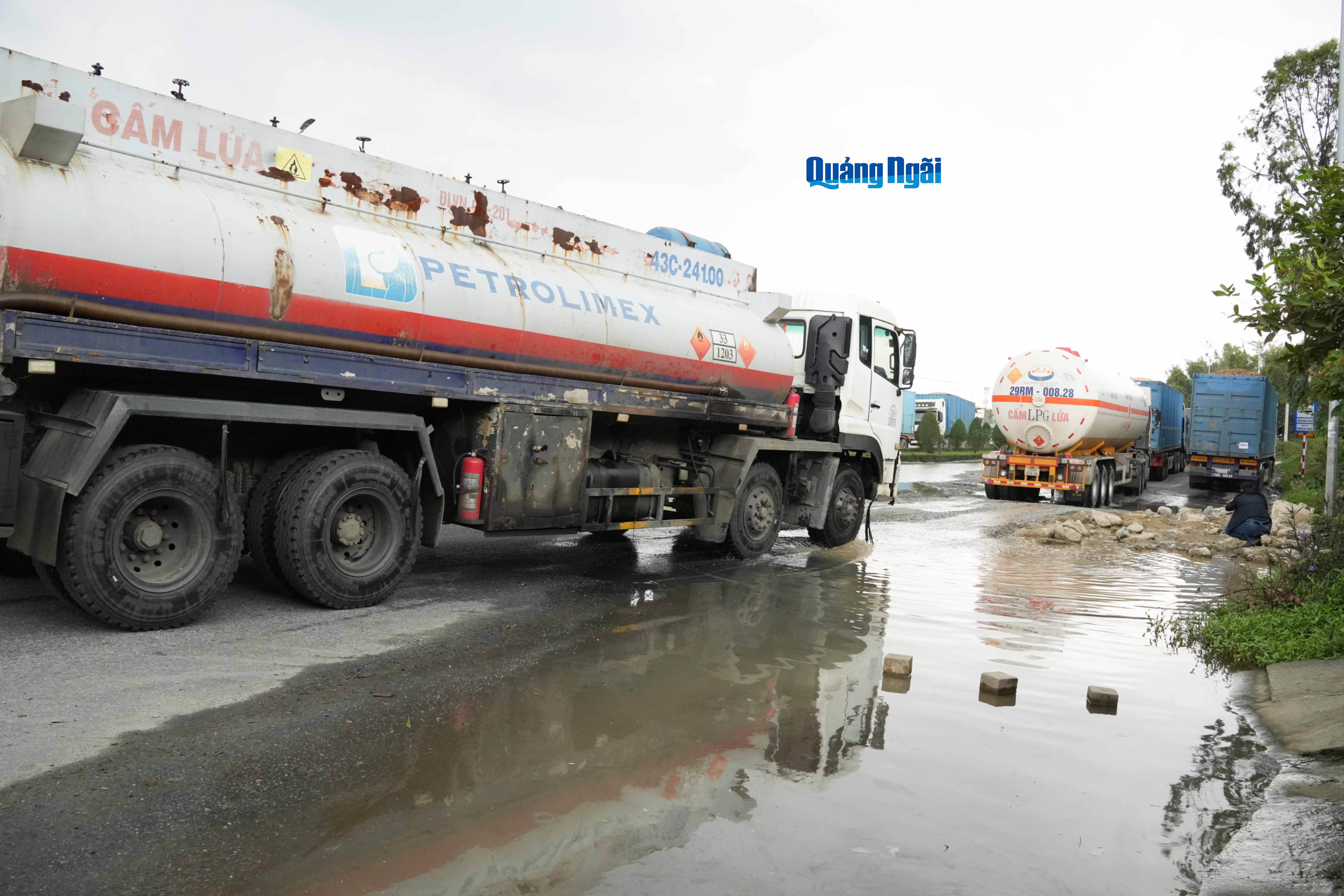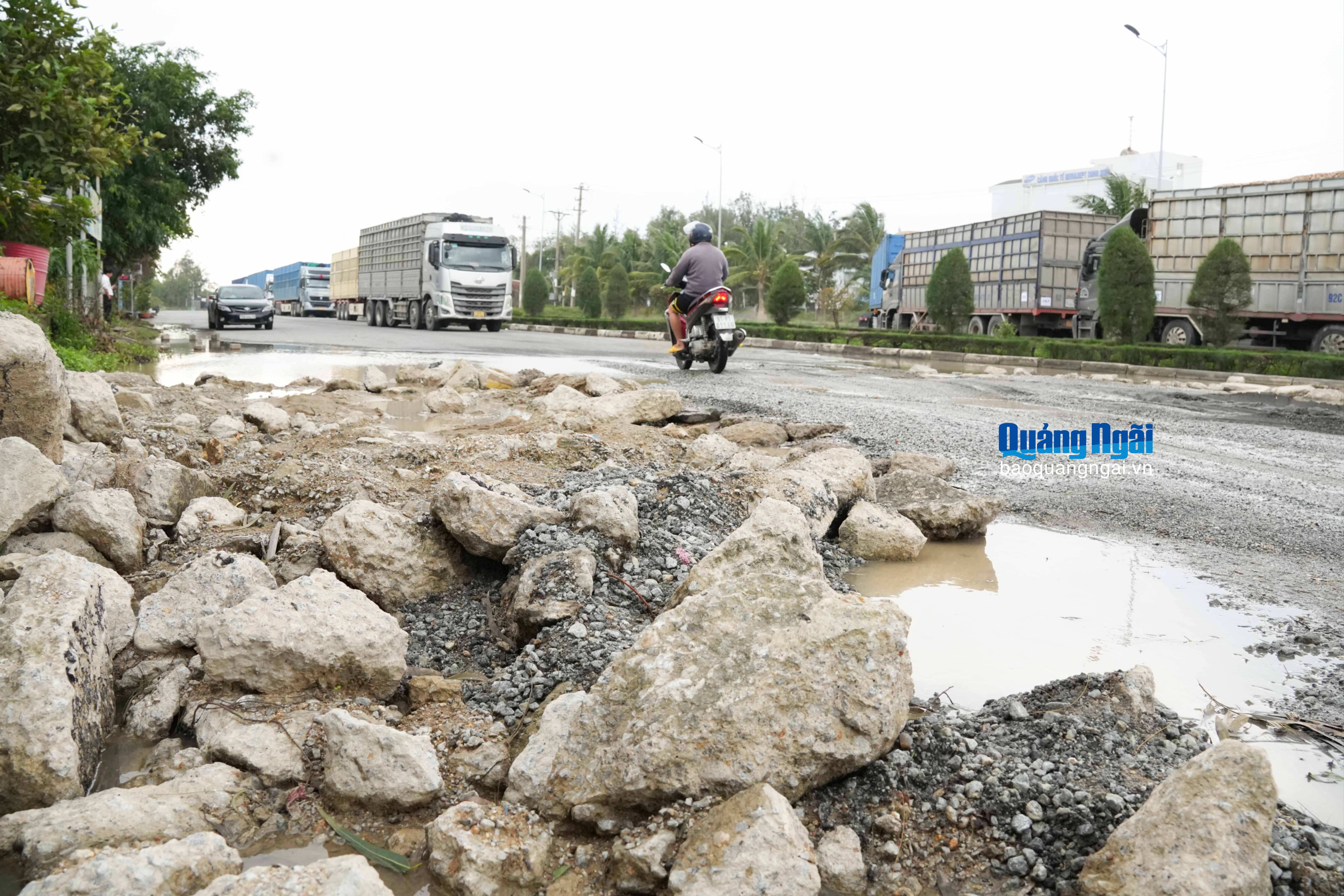 Đặc biệt, đoạn đường dài khoảng 500m dẫn vào cảng Quốc tế Gemadept Dung Quất, qua thôn Tuyết Diêm 1, đang bị hư hỏng nặng, tiềm ẩn nguy cơ tai nạn giao thông.