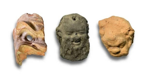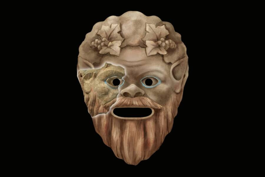 Satyr thường được liên tưởng đến thần Dionysus của Hy Lạp - vị thần của rượu vang, tiệc tùng và sân khấu. Những chiếc mặt nạ như thế này được các diễn viên sử dụng để hoán đổi vai diễn. Mỗi chiếc mặt nạ đại diện cho trạng thái cảm xúc hoặc vai trò của nhân vật trong câu chuyện. Ví dụ như bộ râu đỏ của Satyr sẽ báo hiệu cho khán giả rằng nhân vật này có tính khí nóng nảy. Ảnh: Phanagoria Archaeological Expedition, Institute of Archaeology, Russian Academy of Sciences, and the Volnoe Delo Foundation.