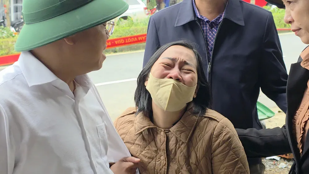 Đôi mắt đỏ hoe, tay ôm chặt lấy lãnh đạo tỉnh, bà Trinh cầu cứu: “Hãy cứu lấy gia đình em, mất hết rồi bác ơi, không còn chi nữa!”.