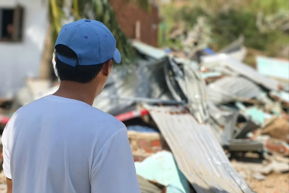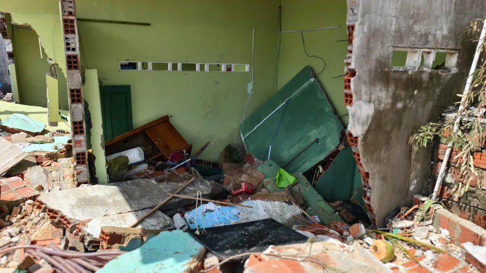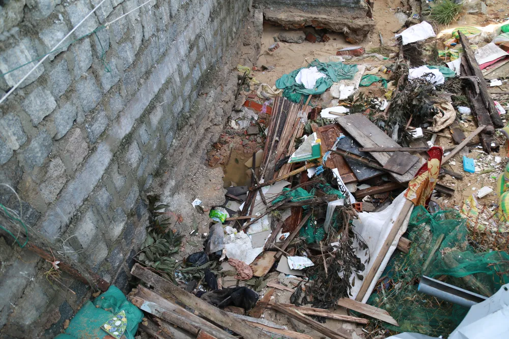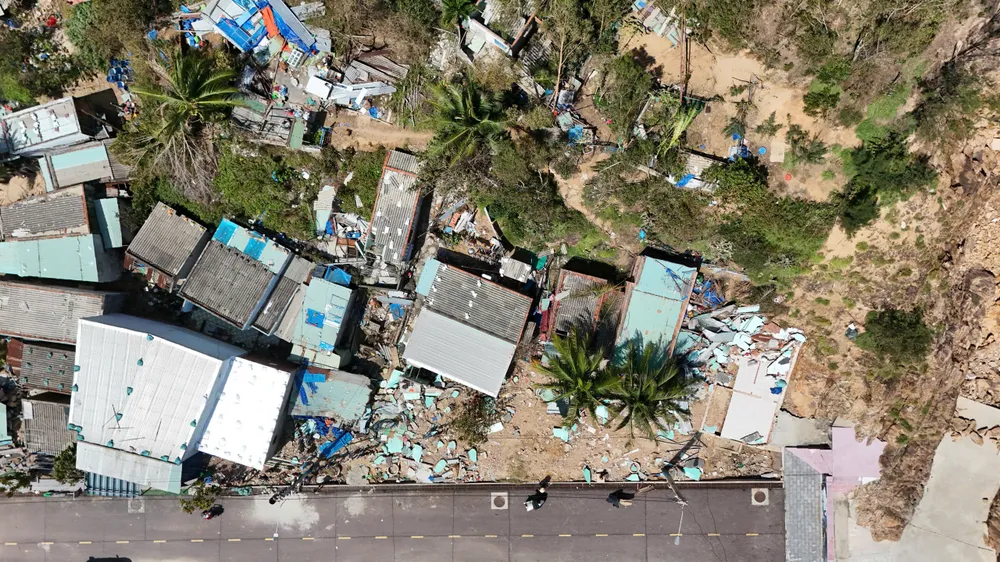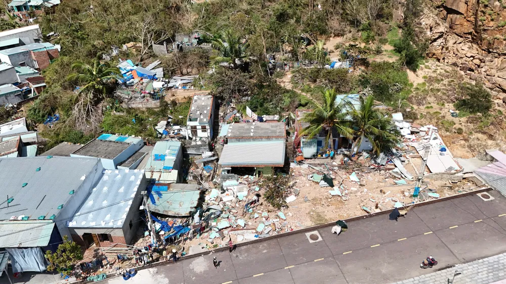 Sau Kalmaegi (bão số 13), dãy nhà dân phía cuối khu phố Hải Bắc, phường Quy Nhơn Đông (tỉnh Gia Lai) như hiện trường một trận chiến. Bảy hộ gia đình mất nhà, tài sản. Ba ngày qua, họ sống nhờ nhà người thân, trụ sở chính quyền.