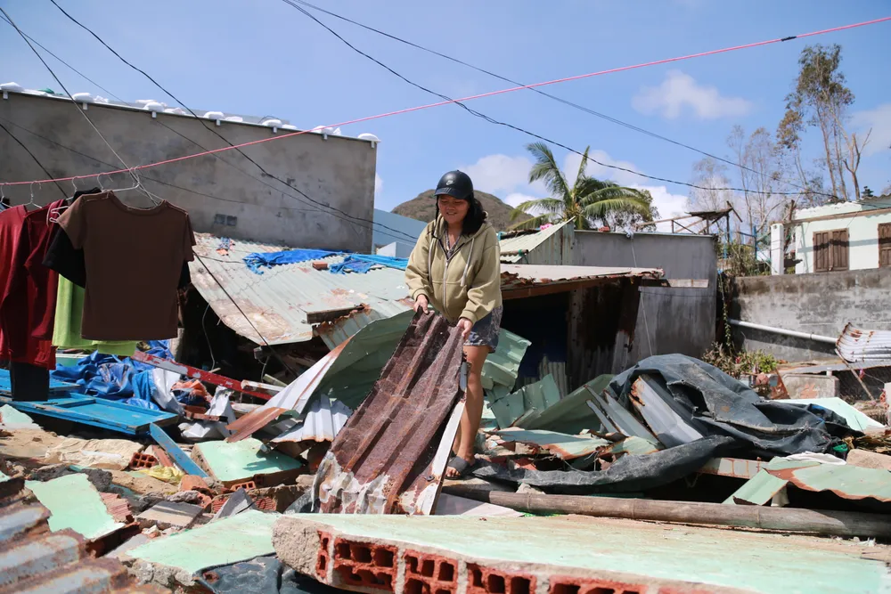 Chị gửi mẹ và con nhỏ ở người cậu ở gần. Chị quay về căn nhà cũ lục lọi dưới những bức tường vỡ vụn, dồn những tấm tôn rách... bán phế liệu. Trước những khó khăn bủa vây, chị mong muốn được hỗ trợ, giúp gia đình tái thiết cuộc sống.