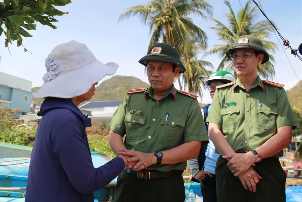Trưa nay (8-11), Thiếu tướng Nguyễn Hồng Nguyên, Phó Chánh văn phòng Bộ Công an, thừa ủy quyền của Đại tướng Lương Tam Quang, Bộ trưởng Bộ Công an đến khu phố Hải Bắc thăm hỏi, động viên các gia đình bị thiệt hại nặng do bão Kalmaegi gây ra.