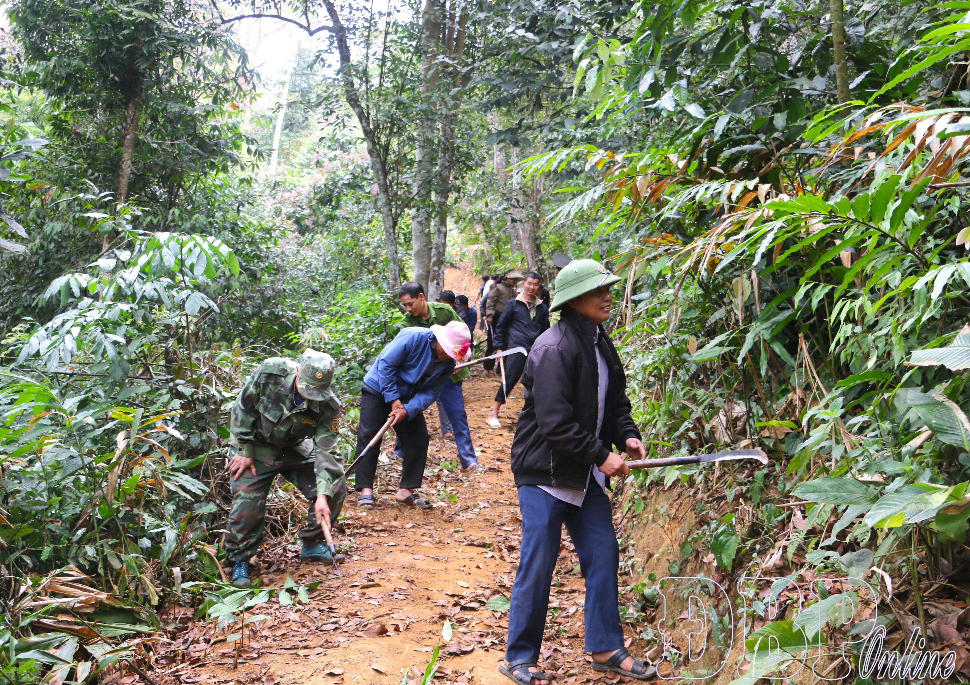 Nhân dân bản Hua Rốm, xã Nà Tấu phát dọn thực bì phòng, chống cháy rừng mùa khô hanh.