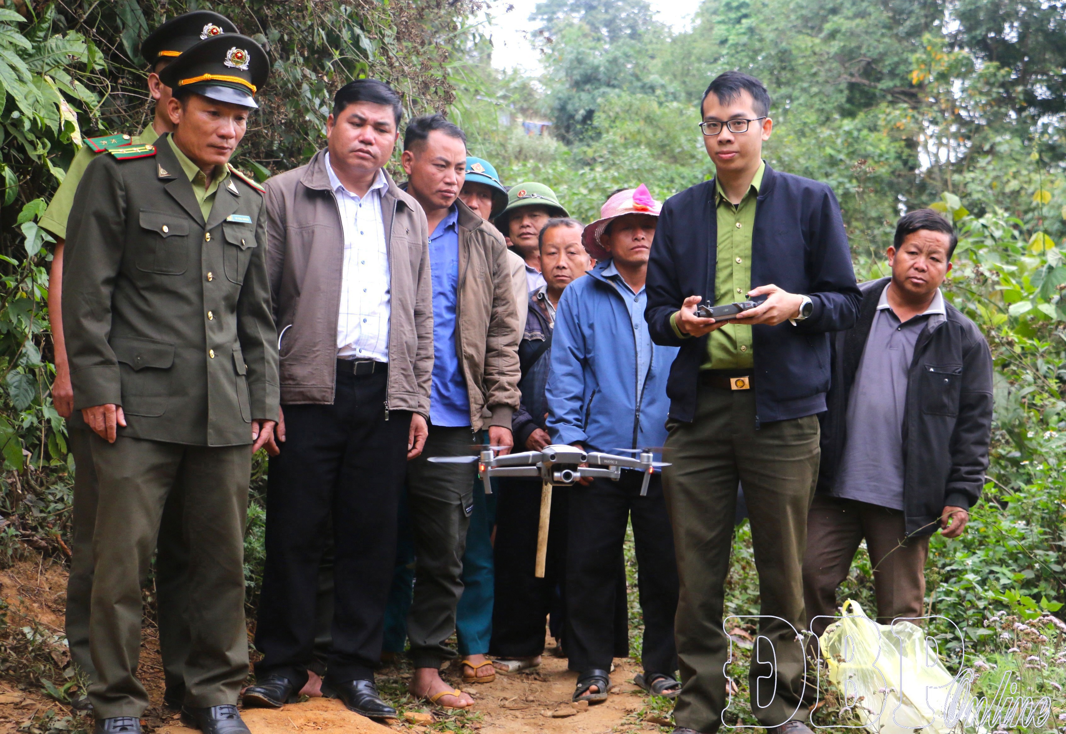 Cán bộ Hạt Kiểm lâm Mường Ảng ứng dụng flycam trong công tác tuần tra, bảo vệ rừng.