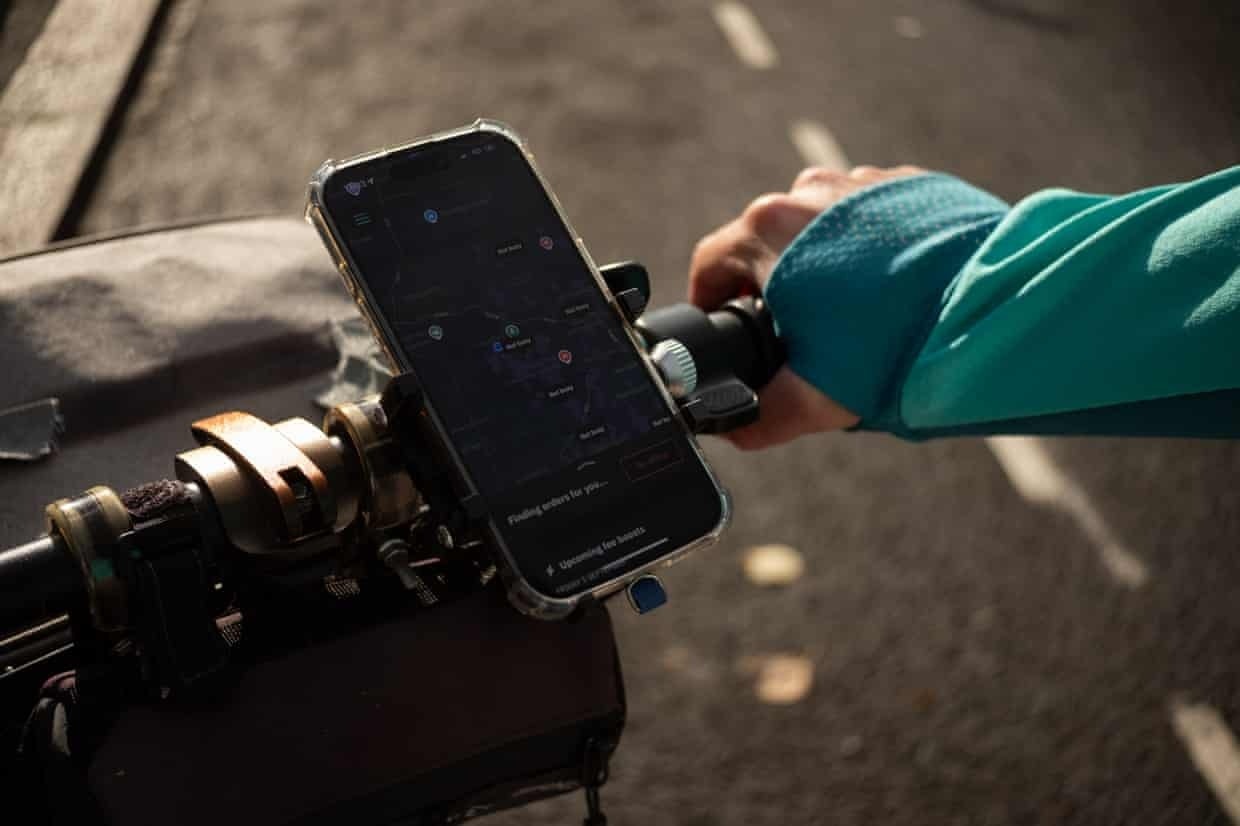 Hết hết những người đi giao đồ ăn cho các ứng dụng tại Anh đều chưa từng được gặp trực tiếp người quản lý. Ảnh: Guardian.
