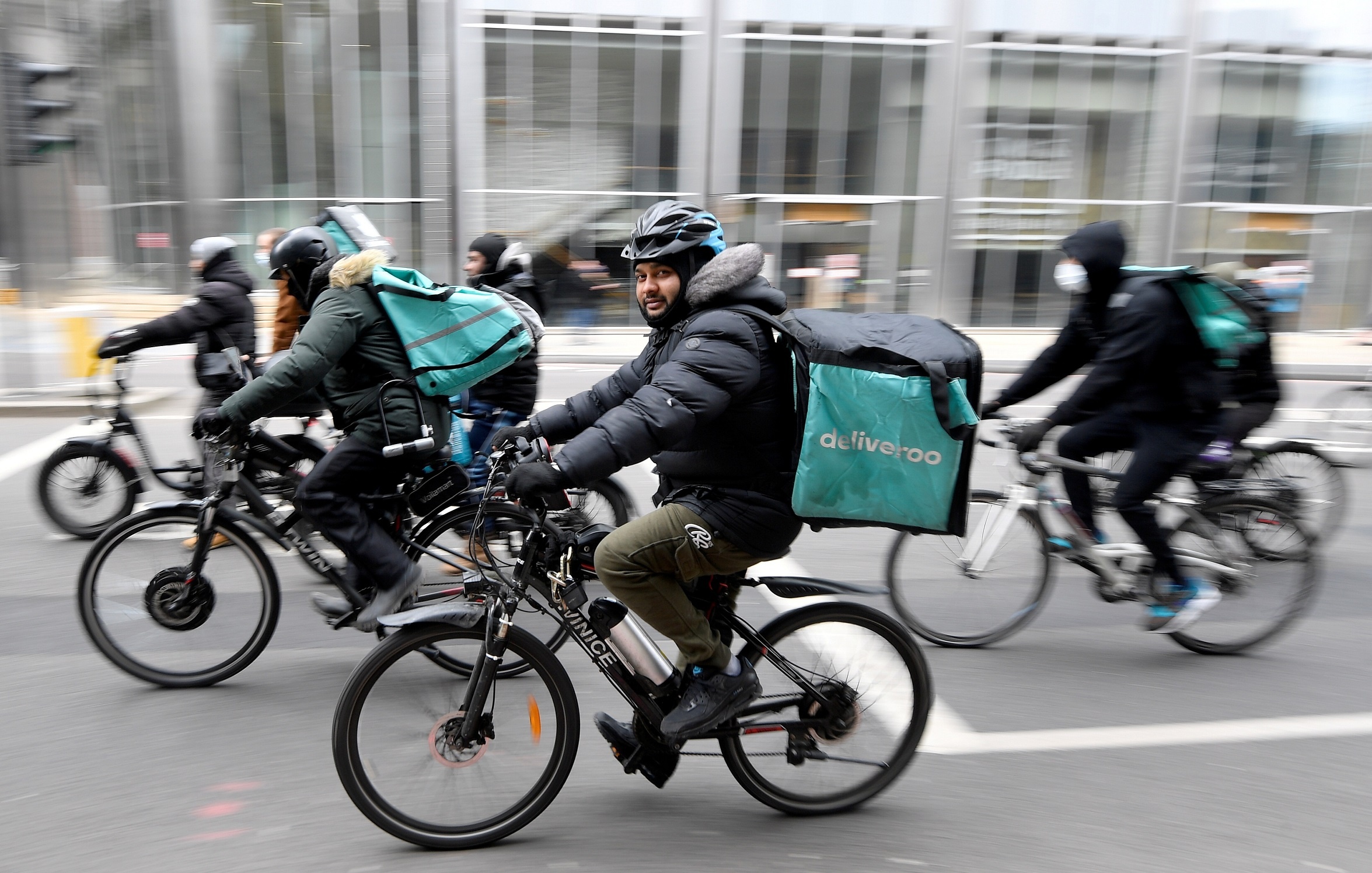 Người giao đồ ăn cho các ứng dụng không được luật pháp Anh nhìn nhận là người lao động được hưởng đầy đủ quyền lợi. Ảnh: Guardian.