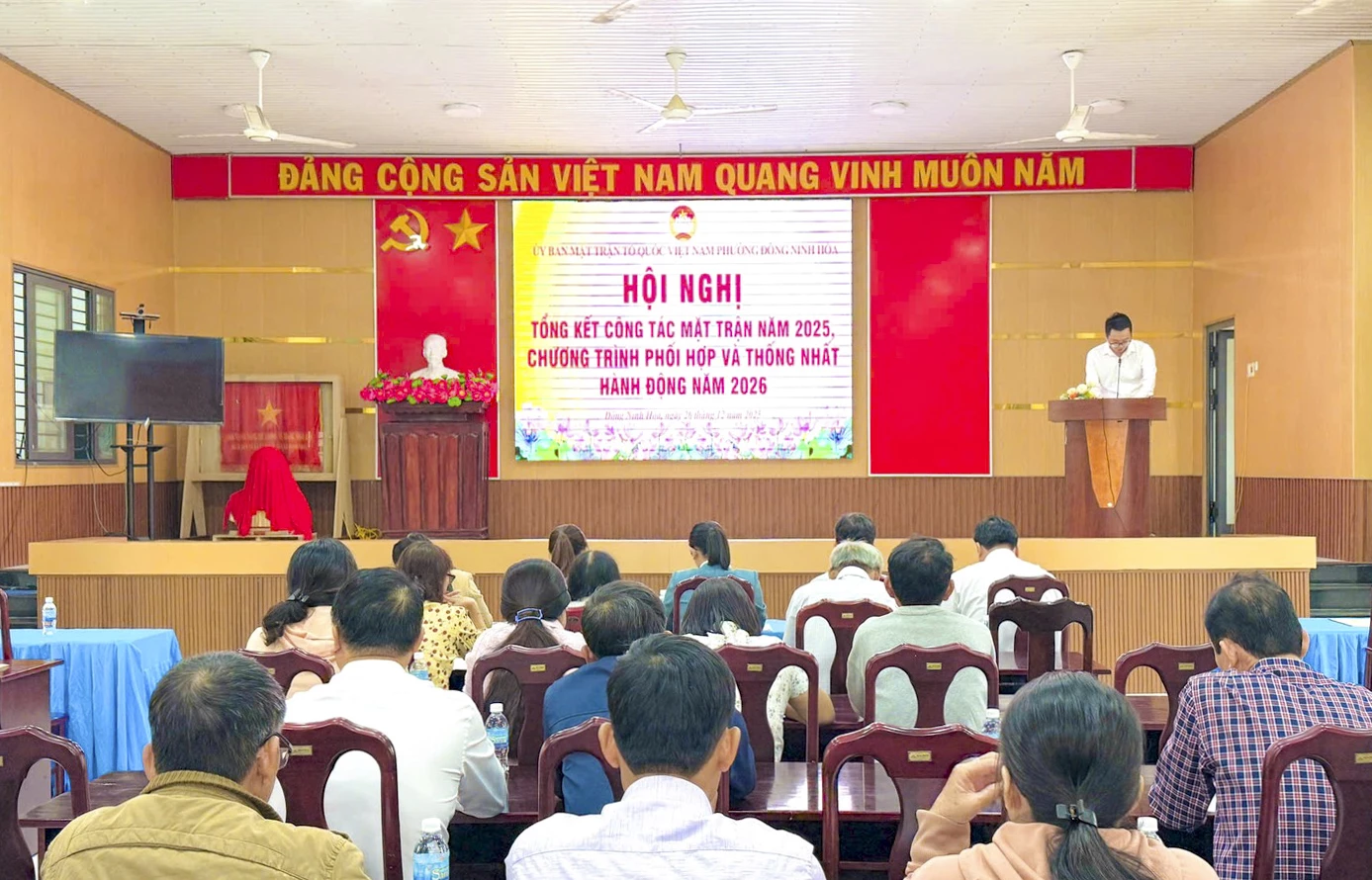 Ngày 26-12, Ủy ban MTTQ Việt Nam phường Đông Ninh Hòa tổ chức hội nghị tổng kết công tác mặt trận năm 2025; triển khai chương trình phối hợp và thống nhất hành động năm 2026.