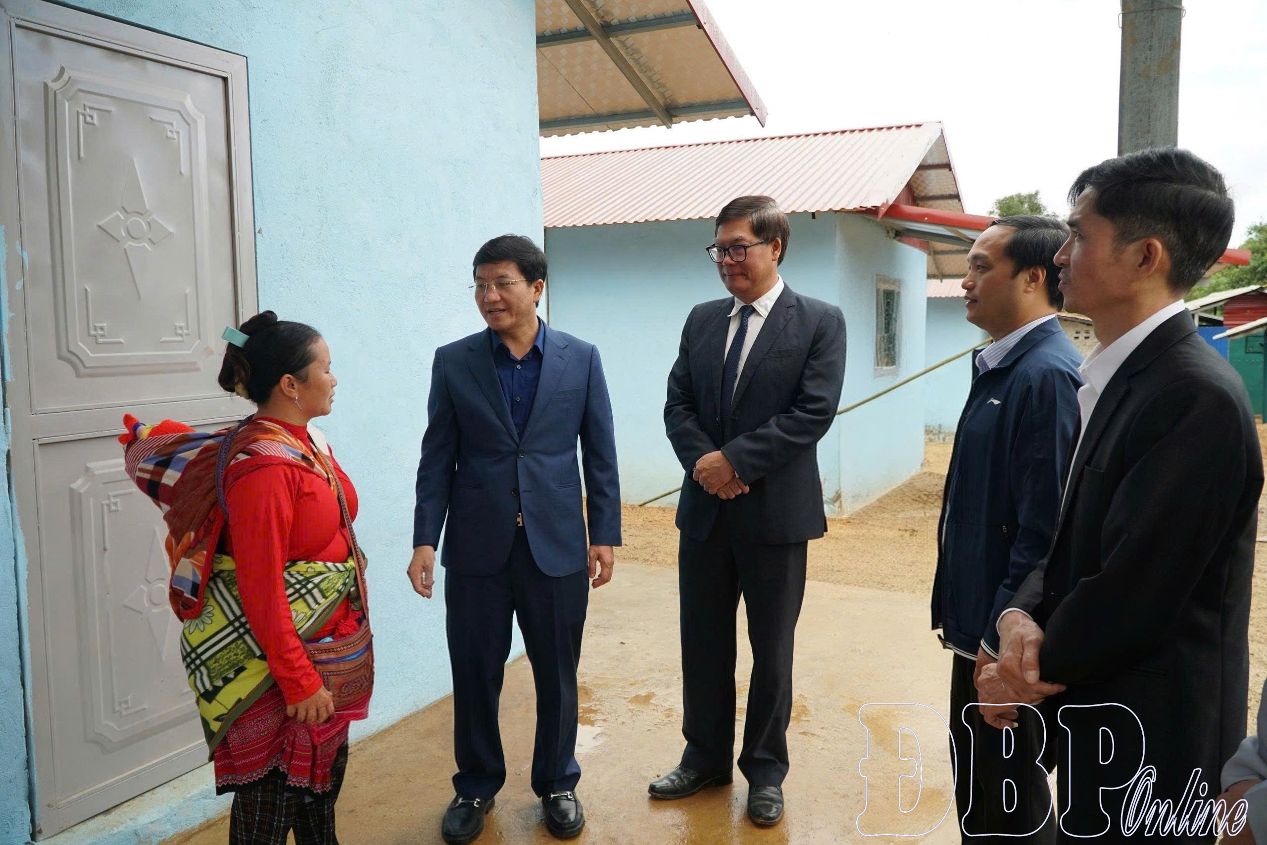 Đồng chí Mùa A Vảng, Ủy viên dự khuyết Trung ương Đảng, Phó Bí thư Tỉnh ủy, Chủ tịch Ủy ban MTTQ Việt Nam tỉnh thăm hỏi, động viên người dân bản Háng Pu Xi, xã Xa Dung. Ảnh: Sầm Phúc