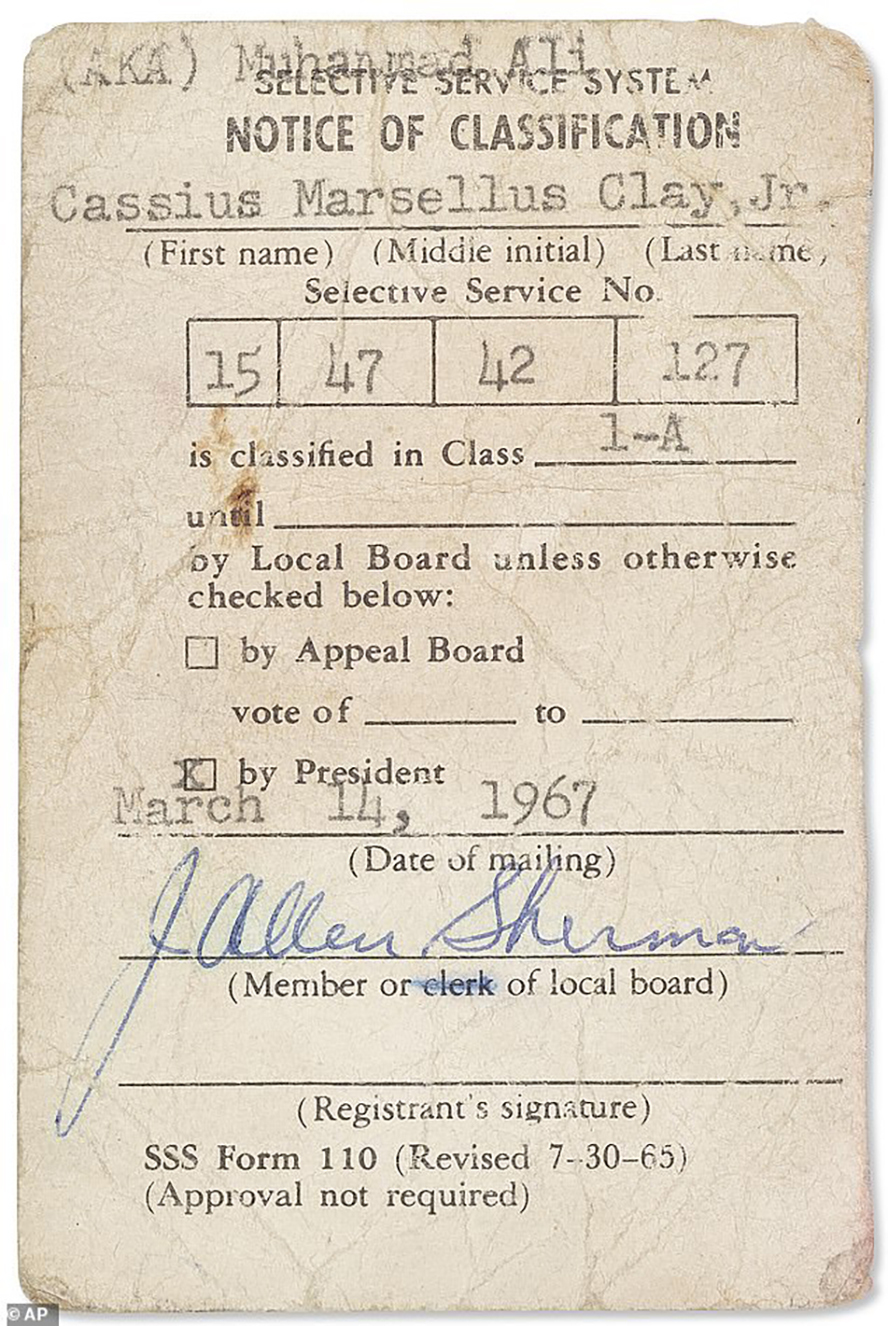 Tấm thẻ nghĩa vụ quân sự của Muhammad Ali đang được rao bán