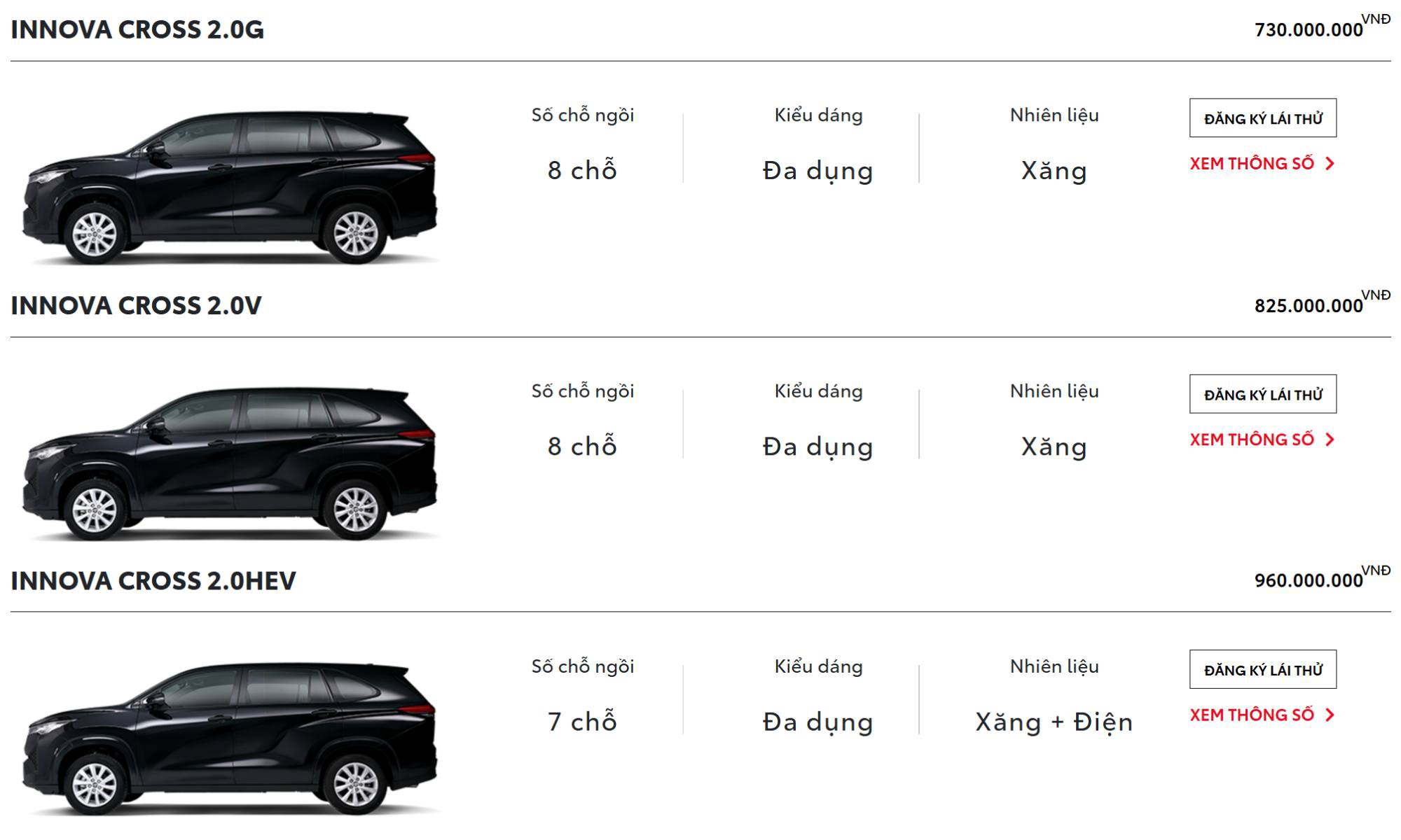 Với tùy chọn màu trắng ngọc trai, khách hàng cần chi thêm 8 triệu đồng. Như vậy, dải giá của Innova Cross hiện dao động từ 730 đến 960 triệu đồng. Nguyên nhân điều chỉnh giá xuất phát từ chính sách ưu đãi thuế tiêu thụ đặc biệt dành cho xe hybrid tự sạc theo Nghị định 360/2025 có hiệu lực từ năm 2026.