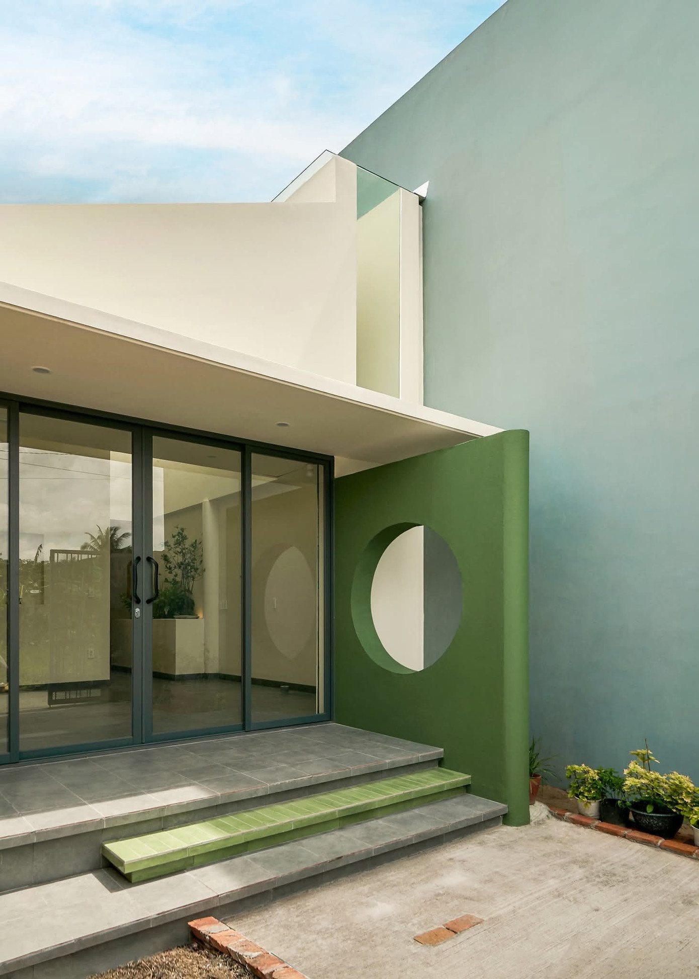 Đặc biệt, khoảng cuối nhà được thiết kế như một điểm nghỉ - nơi mặt nước, mảng xanh và sự yên tĩnh cùng tồn tại. Nơi đây không chỉ là chỗ nghỉ ngơi, đọc sách hay dùng bữa ăn gia đình, mà còn là không gian được tạo nên từ năm yếu tố nghỉ dưỡng - mặt nước, cây xanh, ánh sáng, gió mát và sự tĩnh lặng - hòa hợp thành một tổng thể trọn vẹn.