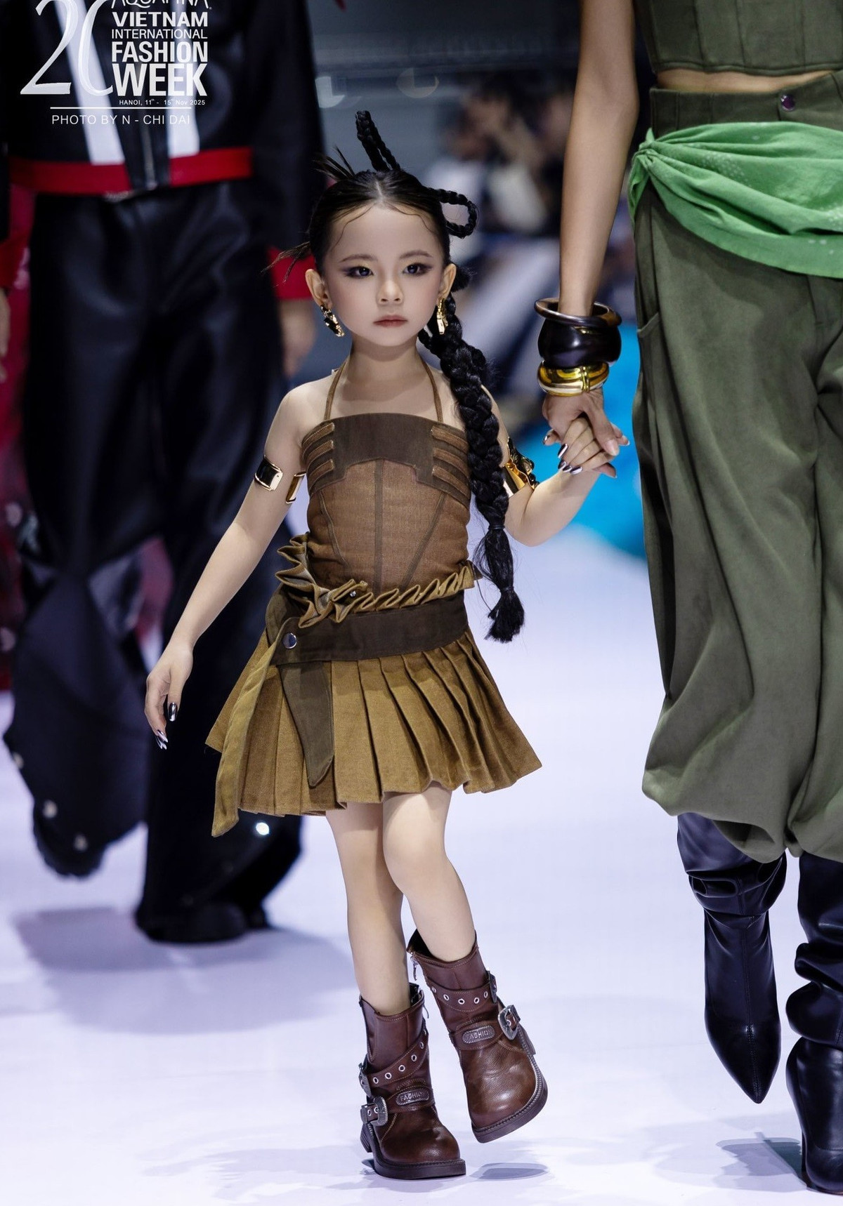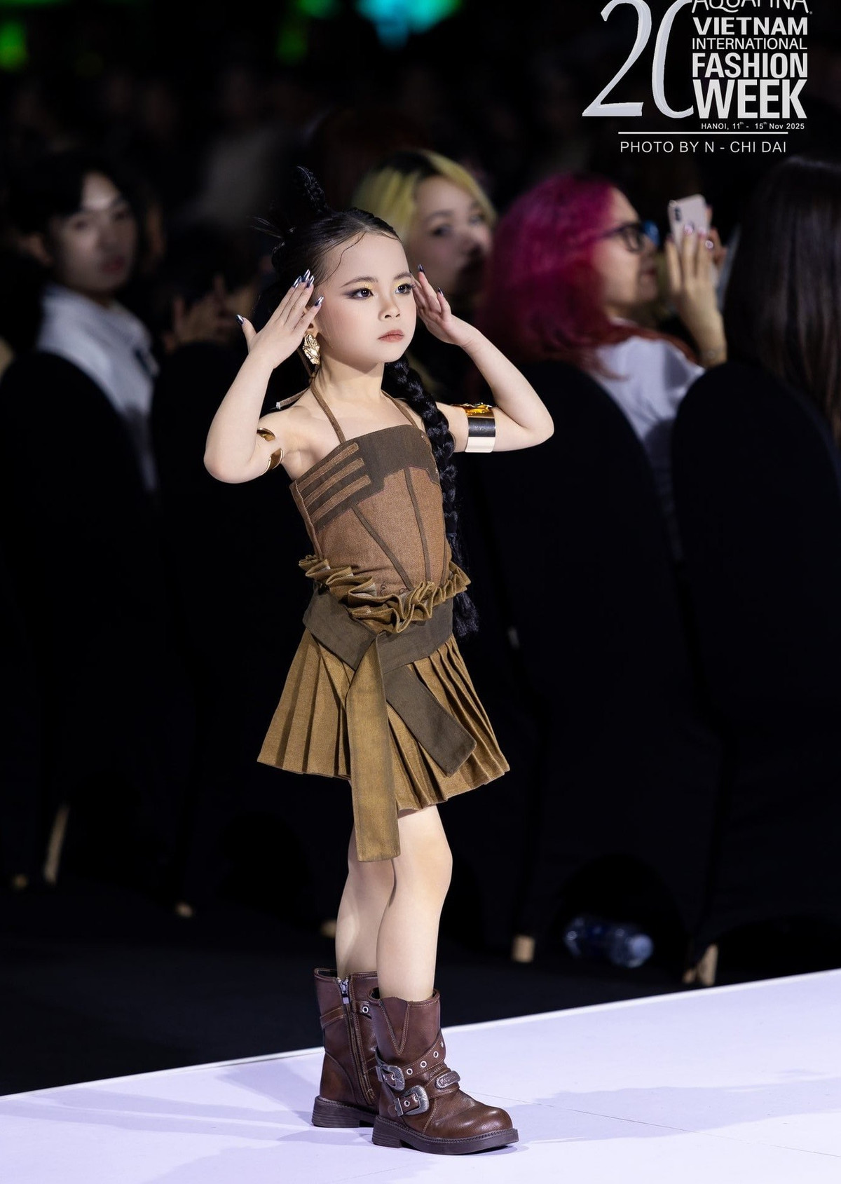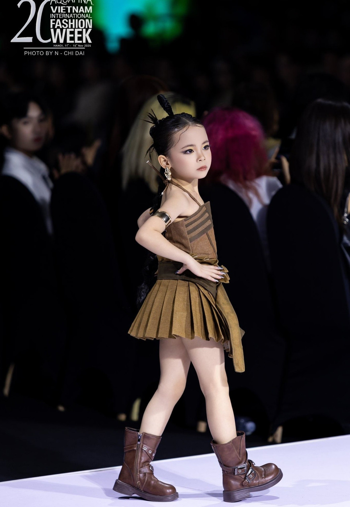 Sự hòa hợp giữa phong cách trang phục và thần thái của cô bé khiến tổng thể trở nên nổi bật, thể hiện đúng tinh thần “thí nghiệm vô cực” mà nhà thiết kế theo đuổi: Kết nối truyền thống và hiện đại, dung hòa văn hóa - sáng tạo và mở ra cách nhìn mới về di sản Việt.