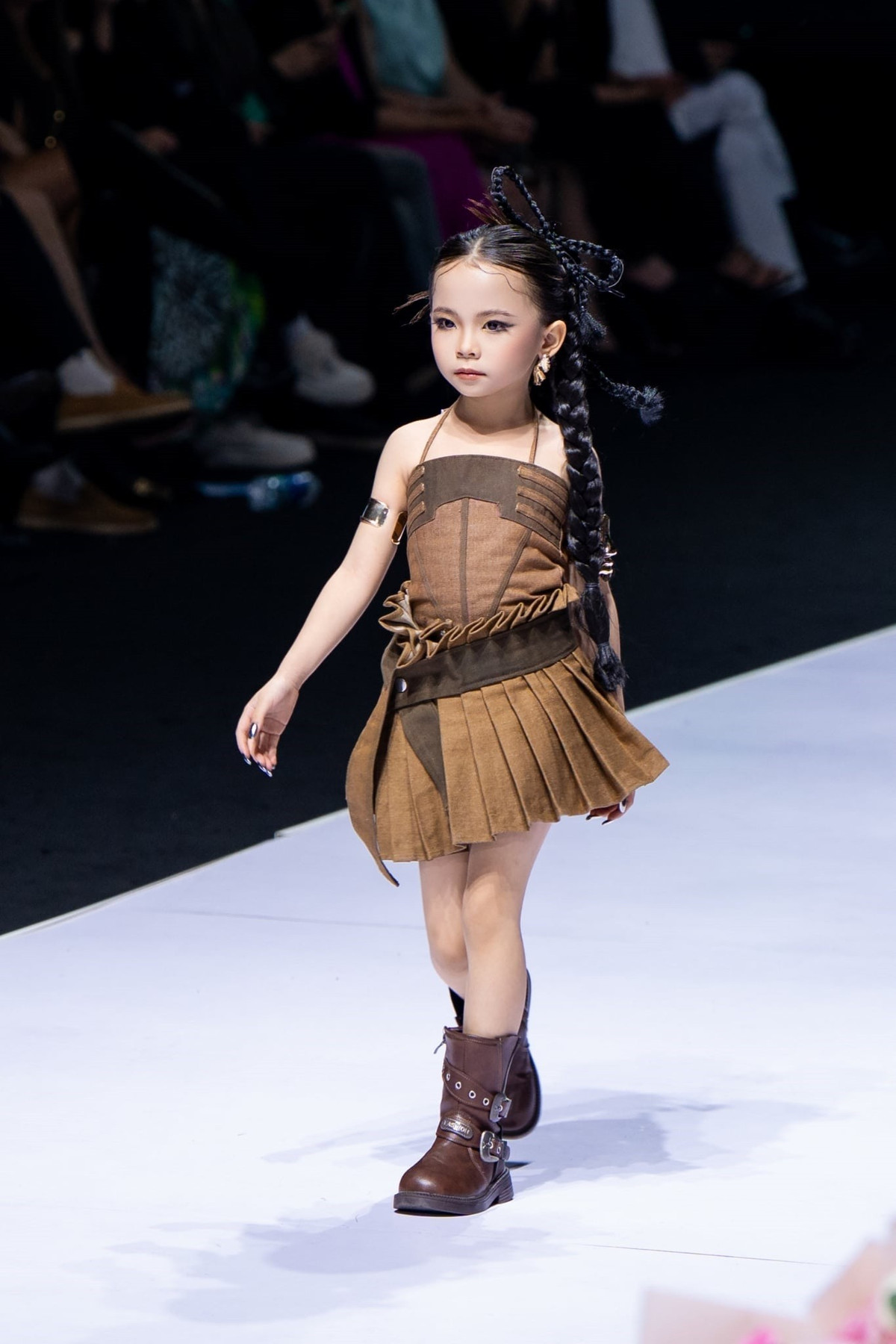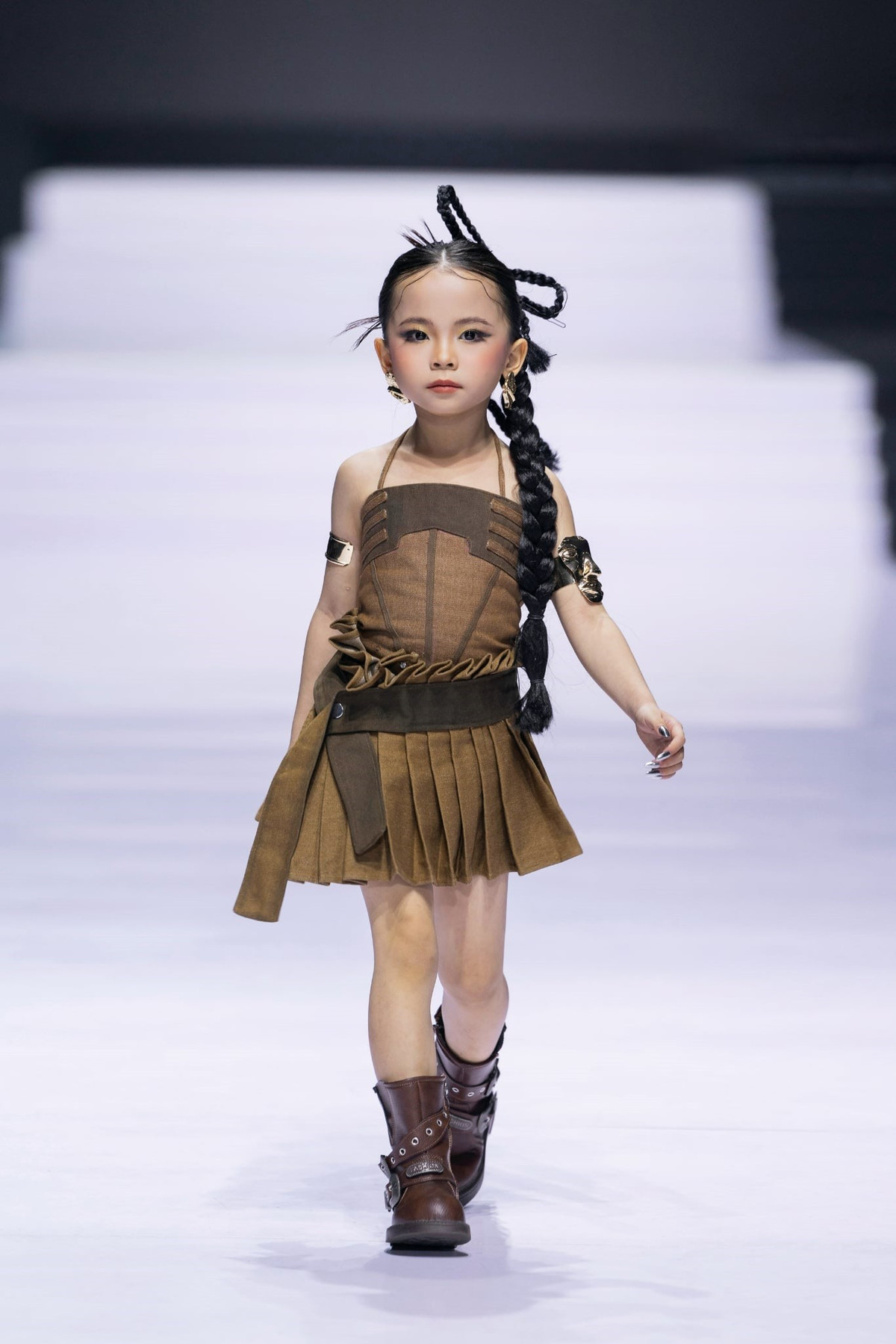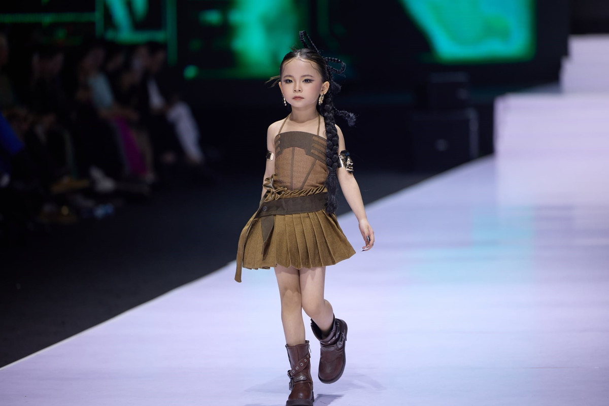 Sự hòa hợp giữa phong cách trang phục và thần thái của cô bé khiến tổng thể trở nên nổi bật, thể hiện đúng tinh thần “thí nghiệm vô cực” mà nhà thiết kế theo đuổi: Kết nối truyền thống và hiện đại, dung hòa văn hóa - sáng tạo và mở ra cách nhìn mới về di sản Việt.