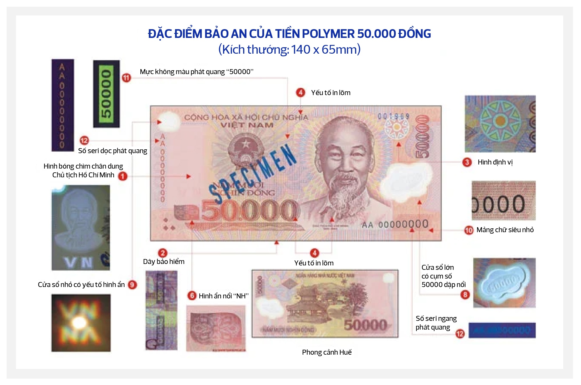 1. Cửa sổ lớn có số mệnh giá dập nổi