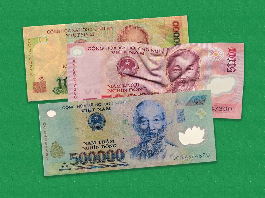 Tờ tiền KĐTCLT có dải màu vàng lấp lánh khó kiểm tra, nhận biết tính chất, đặc điểm/Có sự suy giảm lớn về hình ảnh/Hư hỏng về cấu trúc, hình dạng.