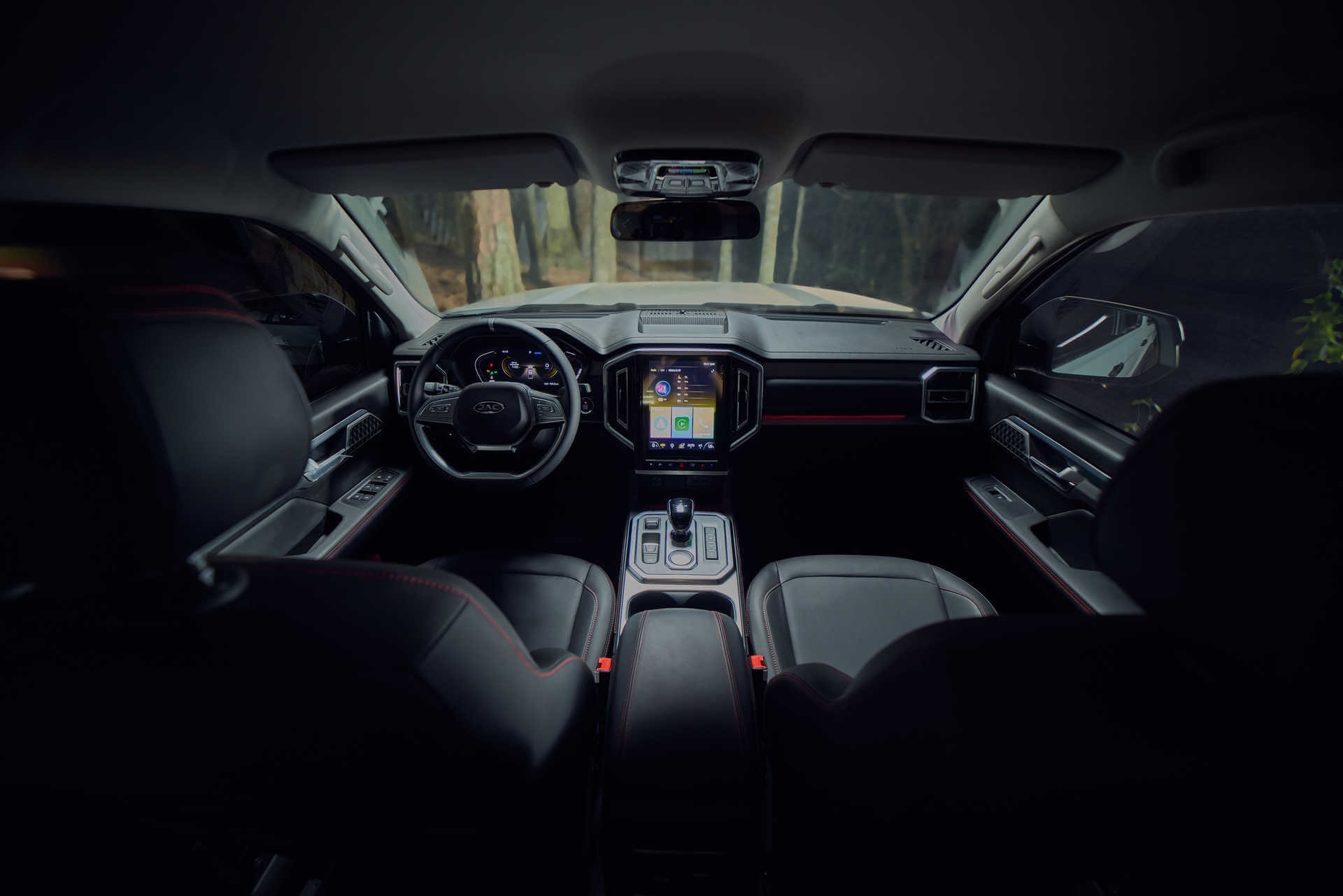 Khoang lái của JAC T9 gây bất ngờ với thiết kế sang trọng, khác biệt hoàn toàn với vẻ thực dụng thường thấy trên các dòng xe bán tải truyền thống.