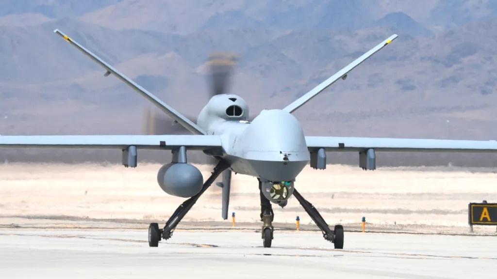 Một chiếc MQ-9 Reaper trên đường băng tại Căn cứ Không quân Creech vào tháng 8/2025. Ảnh: USAF.
