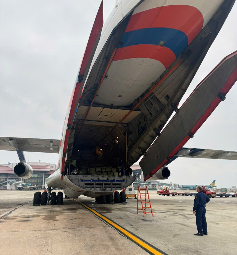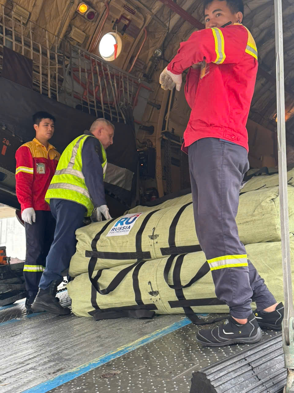 VIDEO: Máy bay Bộ Tình trạng Khẩn cấp Liên bang Nga chở hàng viện trợ nhân đạo tới Việt Nam. Nguồn: Đại sứ quán Nga