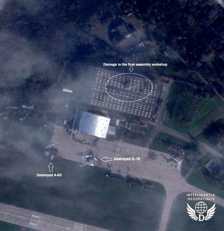 Bộ Tổng tham mưu Ukraine thông báo lực lượng nước này đã đánh trúng máy bay A-60 cực hiếm của Nga, cũng như một chiếc vận tải cơ Il-76 ở nhà máy hàng không Beriev, thuộc thành phố Taganrov.