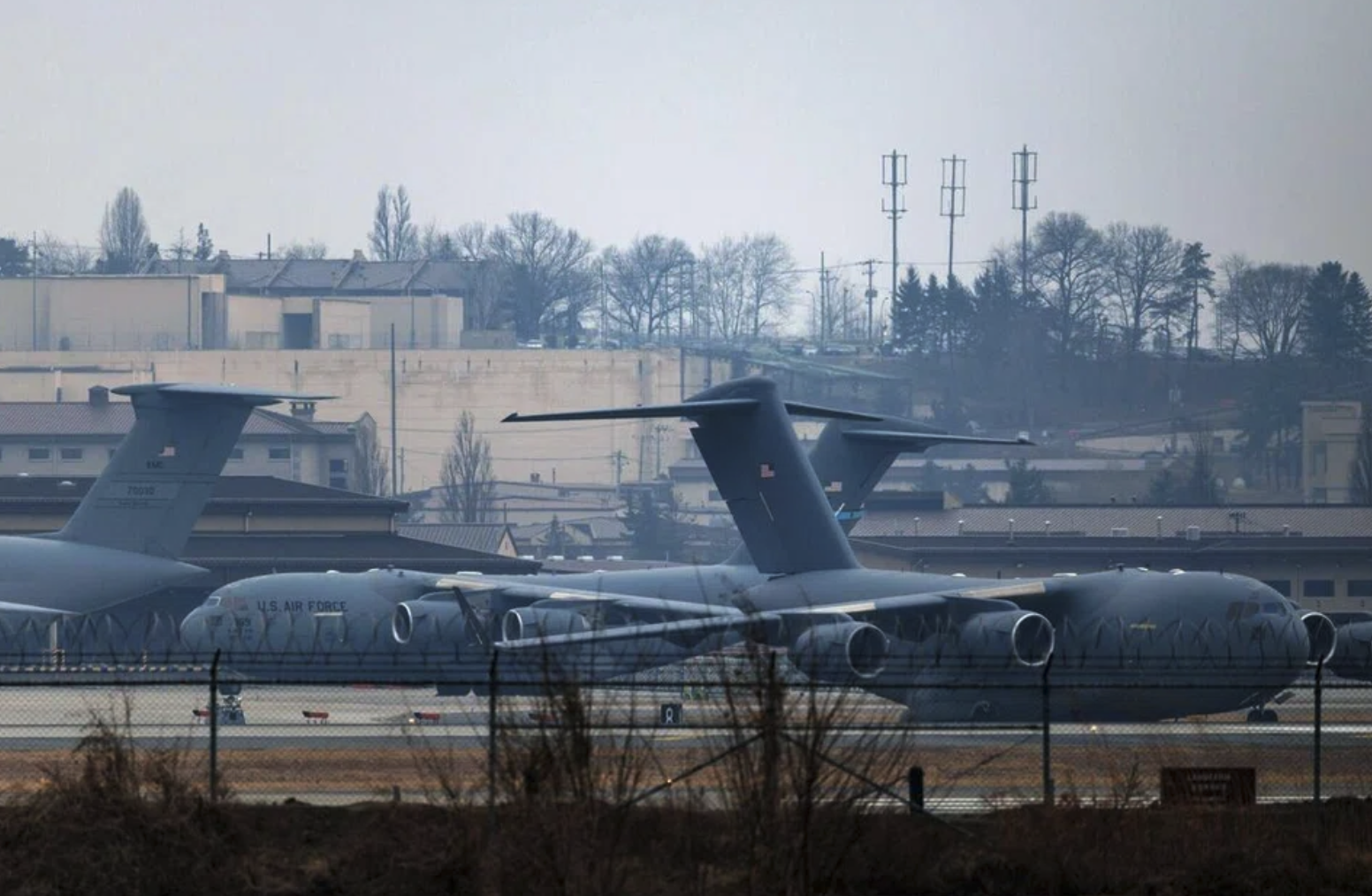 Một máy bay vận tải quân sự C-17 của Không quân Mỹ tại Căn cứ Không quân Osan ở Pyeongtaek, Hàn Quốc, ngày 6/3. Ảnh: Bloomberg