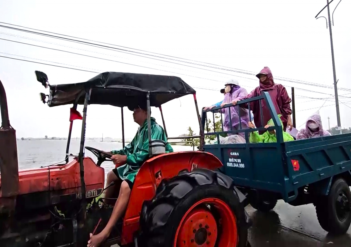 Anh Phụng dùng máy cày chở người dân đi tránh lũ, chở sản phụ đi bệnh viện