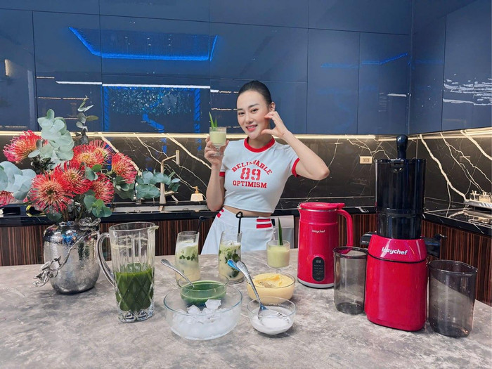 Máy ép chậm 3 triệu giúp Phương Oanh duy trì vóc dáng thon gọn.