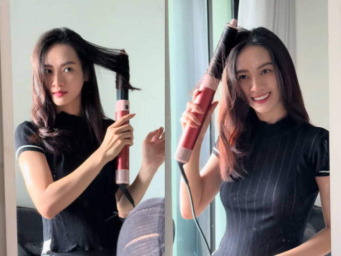 Á hậu Thúy Quỳnh tin dùng máy tạo kiểu tóc đa năng. (Nguồn: TTNV)