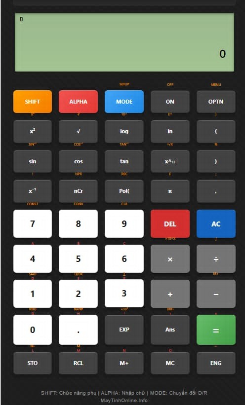 Đây là nhóm chức năng quan trọng nhất dành cho khối học đường và nghiên cứu. Máy tính online cung cấp đầy đủ các thuật toán từ cơ bản đến nâng cao như: