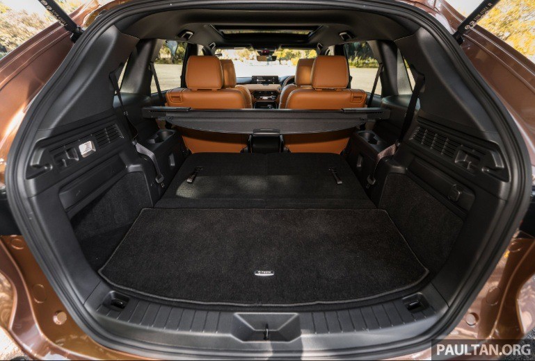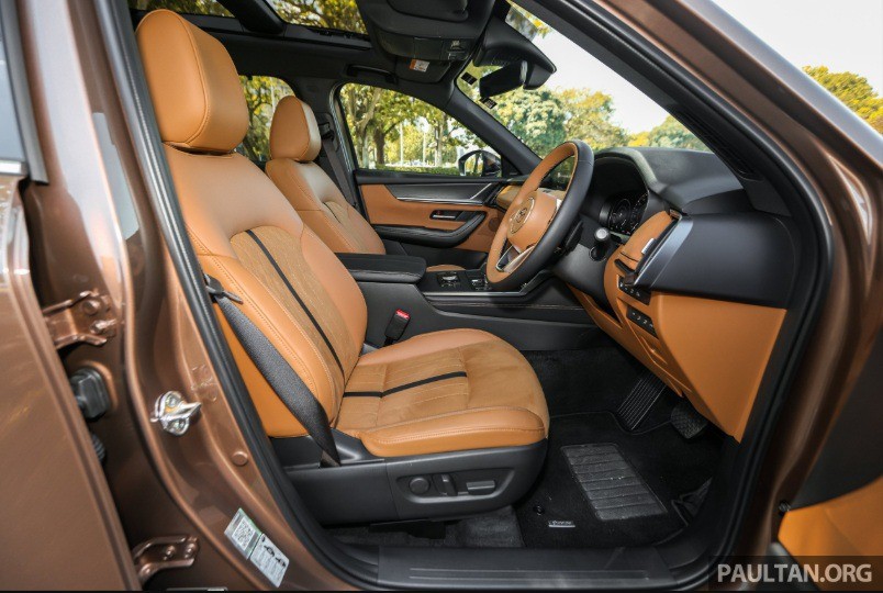 Phía sau là hai ghế phụ có thể gập phẳng để mở rộng khoang hành lý. Phiên bản tại Malaysia sở hữu ghế bọc da Nappa màu nâu tan, tăng cảm giác sang trọng. Hệ thống giải trí trên xe gồm 12 loa Bose, 6 cổng USB-C, sạc không dây, cùng nguồn điện 12V ở cả khoang giữa và cốp sau.