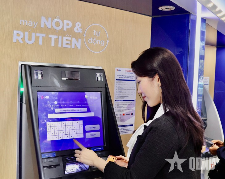 Máy nộp, rút tiền tự động của MB có đầy đủ chức năng bảo mật thông tin khách hàng khi giao dịch. Ảnh: PHƯƠNG ANH