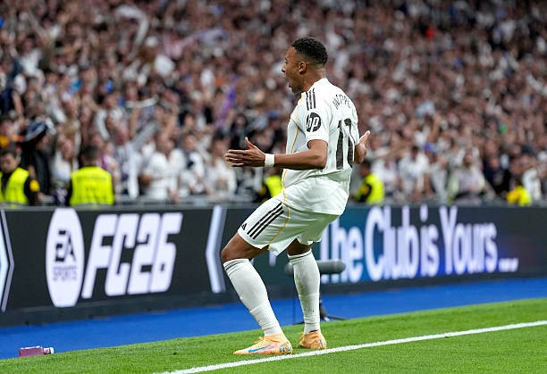 43': Vinicius đi bóng tốc độ bên cánh trái rồi tạt chuẩn xác vào vòng cấm, để Eder Militao bật cao đánh đầu kiến tạo cho Jude Bellingham đệm bóng cận thành, nâng tỉ số lên 2-1 cho Real Madrid.