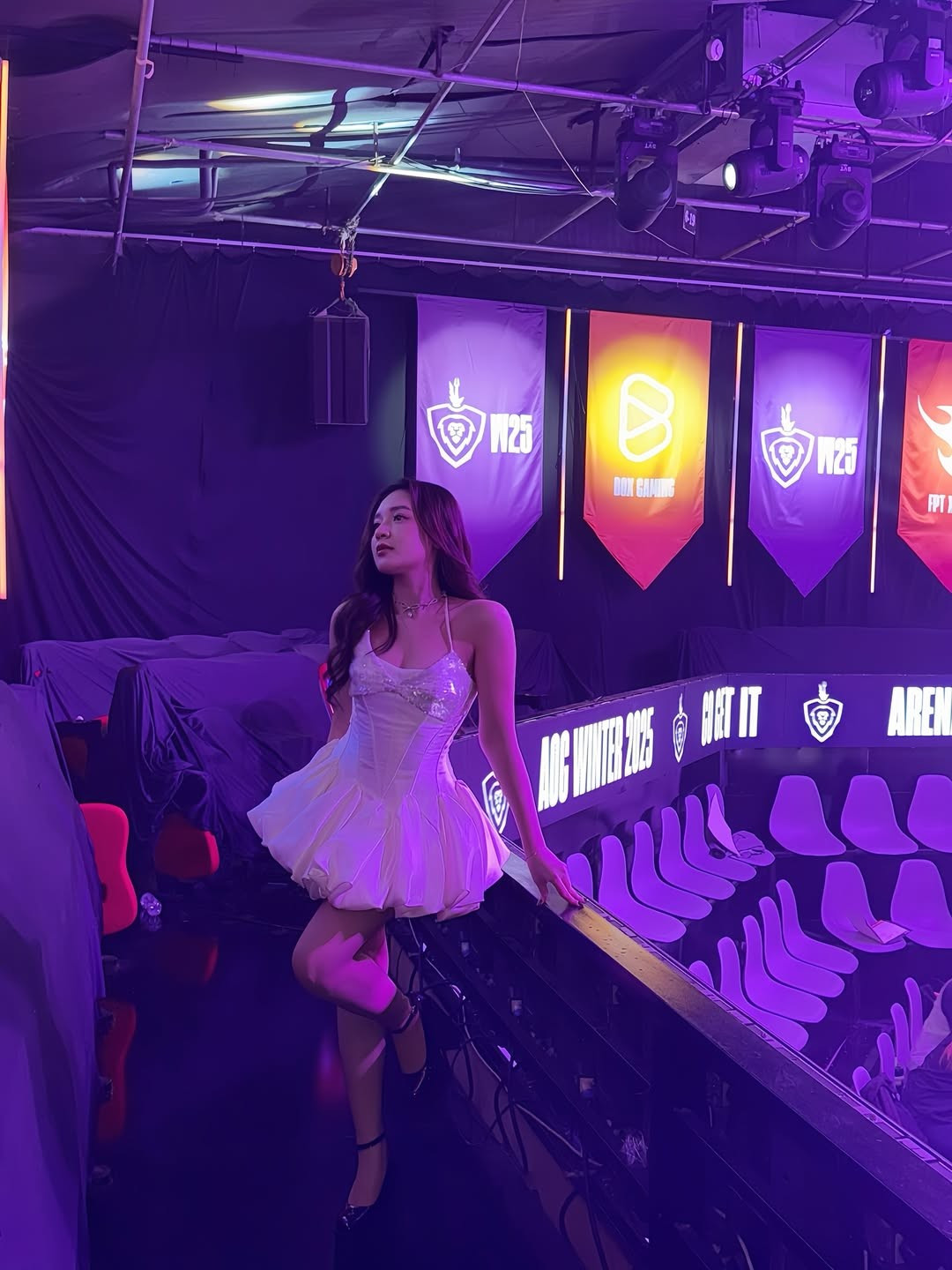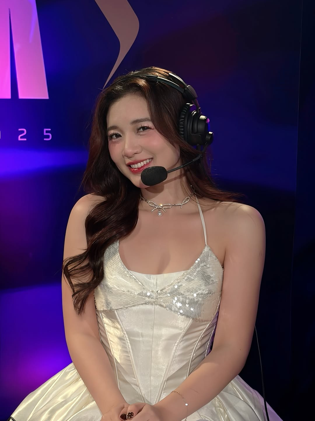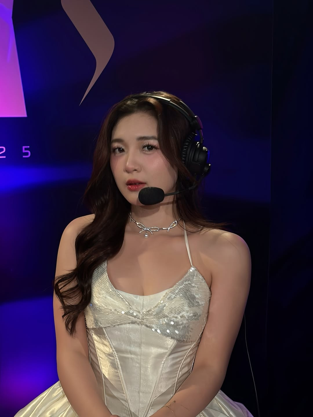 Đặc biệt, khi xuất hiện với vai trò MC trong tuần thi đấu đặc biệt Super Week của ĐTDV Mùa Đông 2025, cô nàng khiến các khán giả ngay tại nhà thi đấu lẫn những người xem trực tuyến phải xuýt xoa với nhan sắc xinh đẹp của mình. (Ảnh: IGNV)