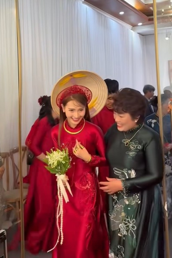 Trong các hình ảnh và video được chia sẻ, mẹ của Đức Huy liên tục nở nụ cười rạng rỡ, cử chỉ ân cần khi dẫn Huyền Trang bước vào không gian tổ chức lễ. Khoảnh khắc 2 người sánh vai nhau bước vào được cộng đồng mạng chia sẻ rộng rãi.
