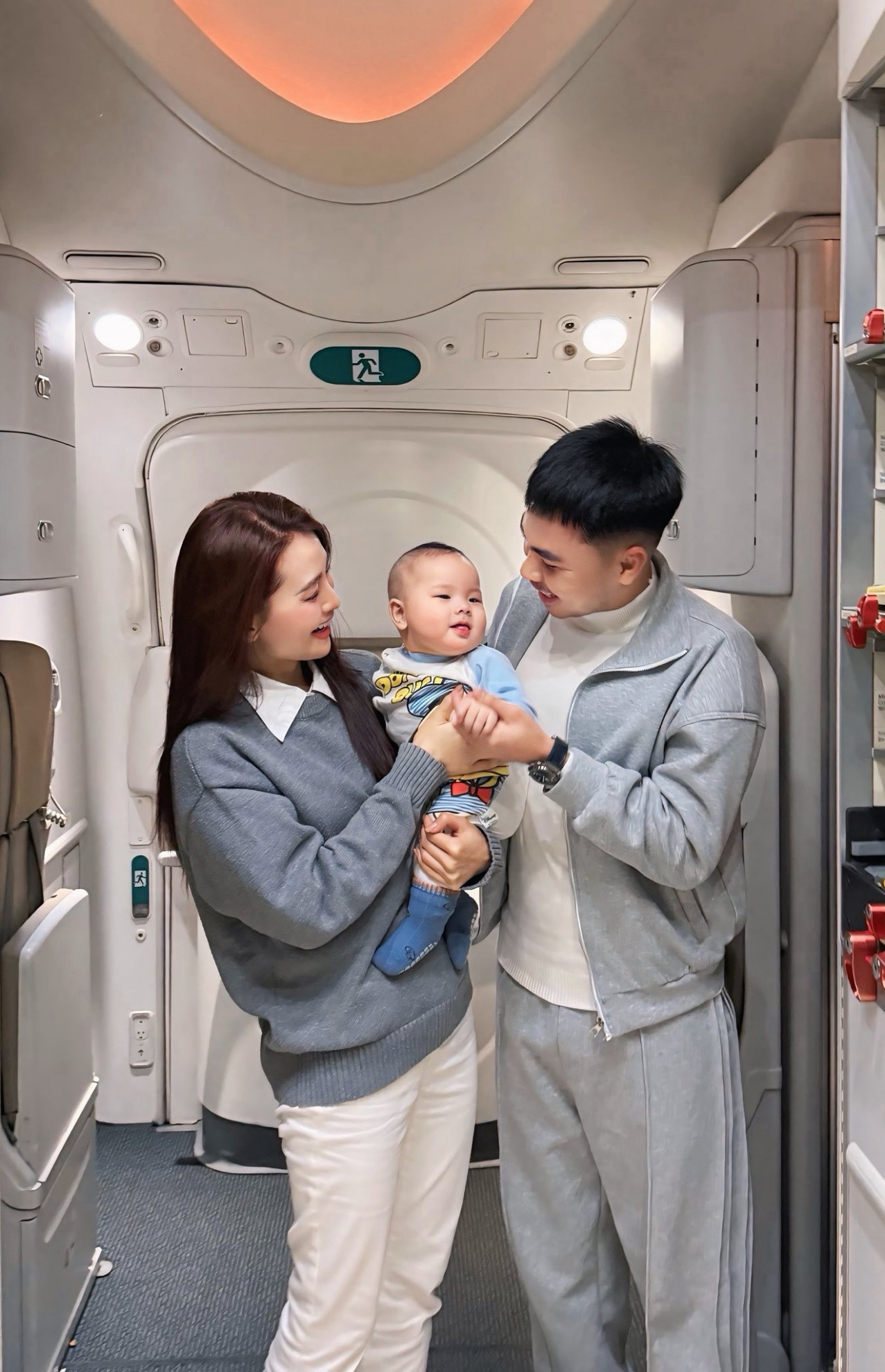 Trên trang cá nhân, MC Huyền Trang chia sẻ niềm vui khi mình và bạn trai - cầu thủ Đức Huy nhận món quà từ tiếp viên trưởng và phi hành đoàn của Hãng hàng không Quốc gia trong chuyến du lịch Hàn Quốc.