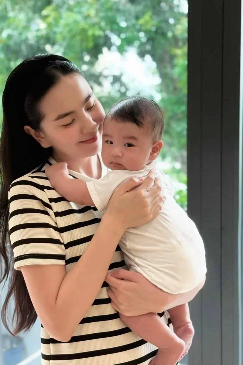 Bé Panda hiện gần 1 tuổi, sở hữu ngoại hình bụ bẫm với các chỉ số phát triển vượt chuẩn trung bình của WHO. Mai Ngọc chia sẻ cô cảm thấy hạnh phúc khi nhận được sự ủng hộ tuyệt đối từ gia đình chồng, đặc biệt là mẹ chồng, giúp cô yên tâm thực hiện thiên chức làm mẹ.