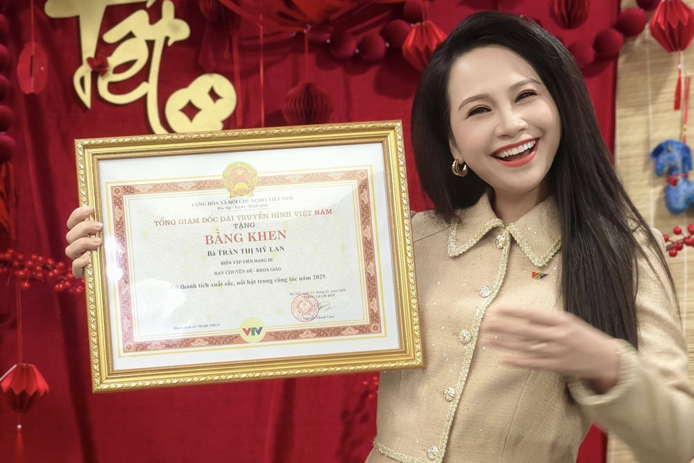 Đúng ngày vía Thần Tài (26/2), MC Mỹ Lan của VTV chia sẻ tin vui khi chính thức nhận Bằng khen của Tổng Giám đốc Đài Truyền hình Việt Nam, ghi nhận những nỗ lực không ngừng trong năm 2025.