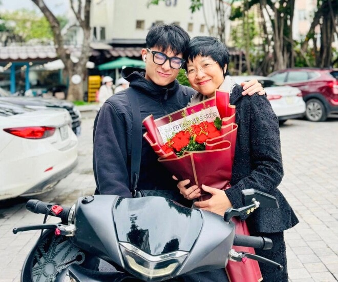 Thảo Vân được con trai tặng hoa trong ngày 20/11.