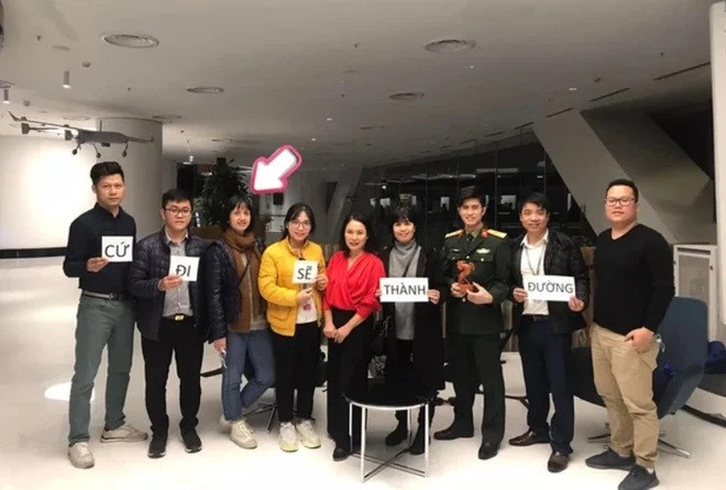 Lần hiếm hoi MC Tùng Chi xuất hiện trước truyền thông khi chụp ảnh cùng các đồng nghiệp.