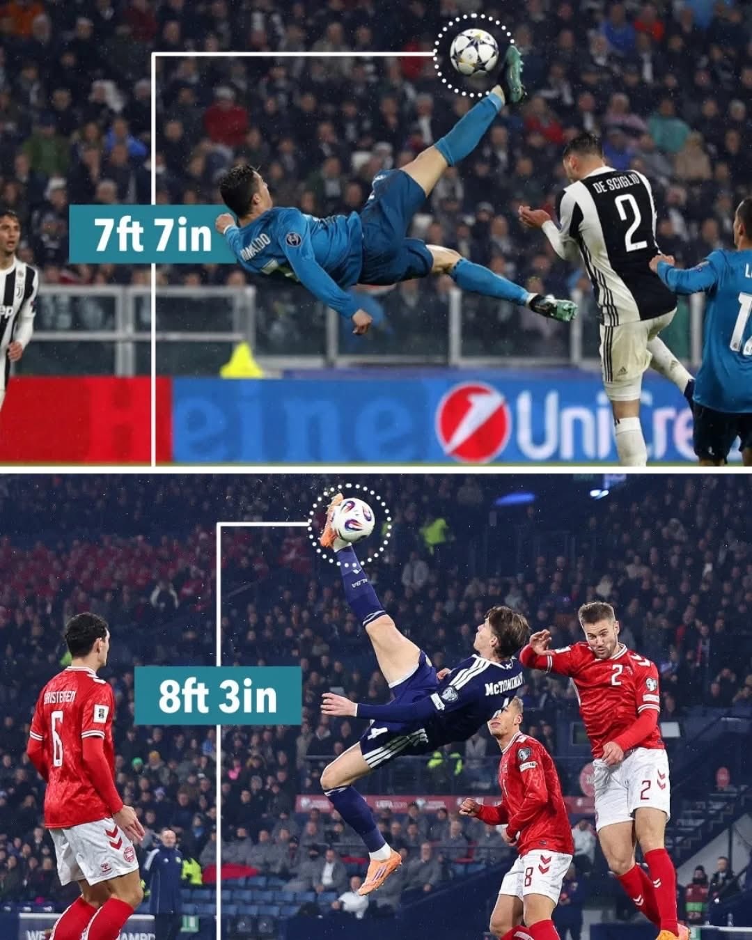 Scott McTominay tạo nên một trong những khoảnh khắc ngoạn mục nhất lịch sử bóng đá Scotland khi thực hiện cú ngả bàn đèn ở độ cao 2,53 mét trong trận thắng Đan Mạch 4-2 ở vòng loại World Cup 2026 hôm 19/11.